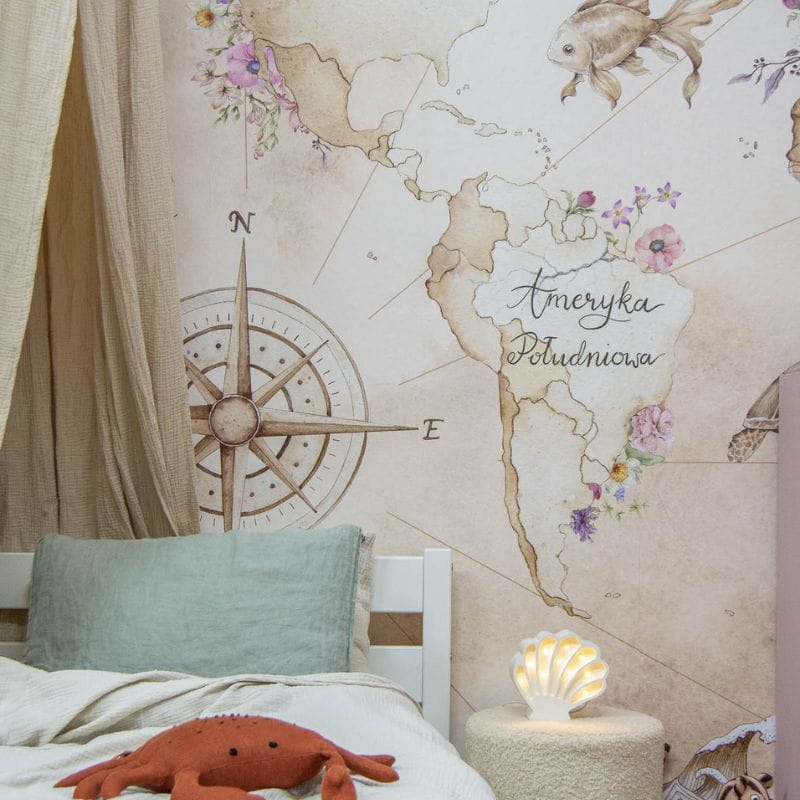 Tapeta mapa świata Dekorillo - morska aranżacja pokoju dziewczynki