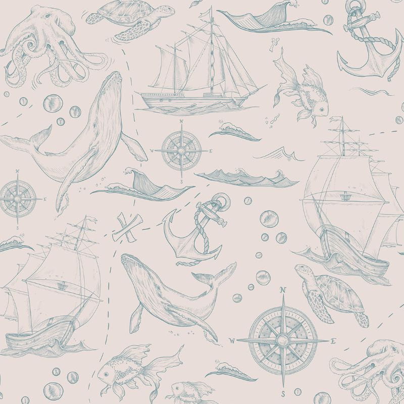 Tapeta morska do pokoju dziecka - monochromatyczna tapeta ze statkami