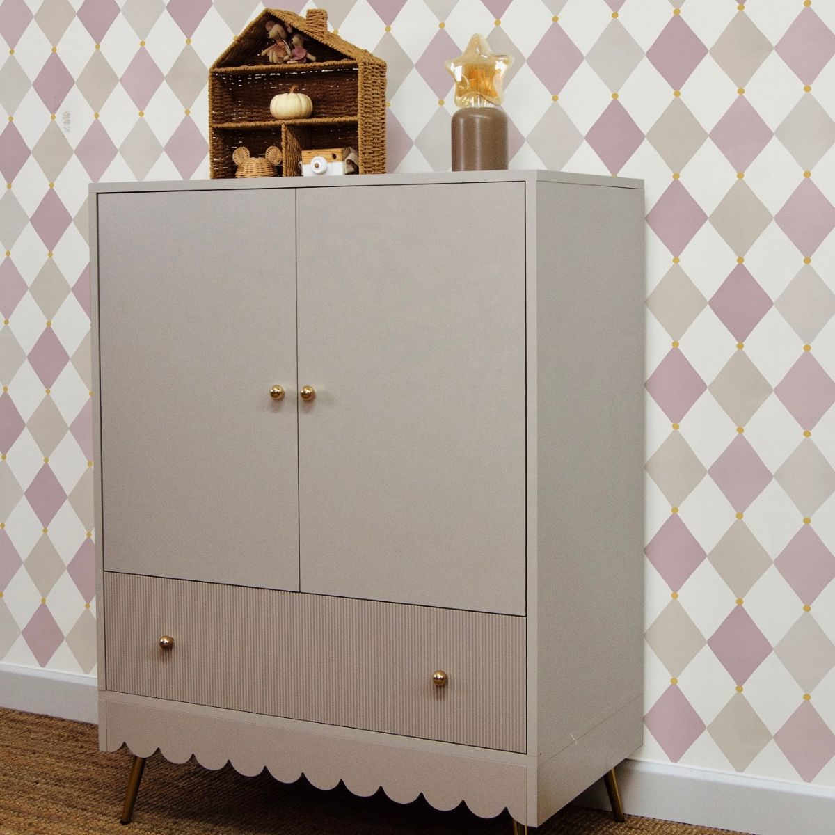 Tapeta Tiny Parade to subtelne połączenie klasyki i nowoczesności w dziecięcym wydaniu. Delikatne romby w odcieniach różu, zieleni, miodu i beżu układają się w harmonijny rytm, który przyciąga wzrok, a jednocześnie nie przytłacza wnętrza. Ten ponadczasowy motyw inspirowany światem dziecięcej wyobraźni wprowadza do pokoju radość, lekkość i poczucie beztroskiej zabawy.