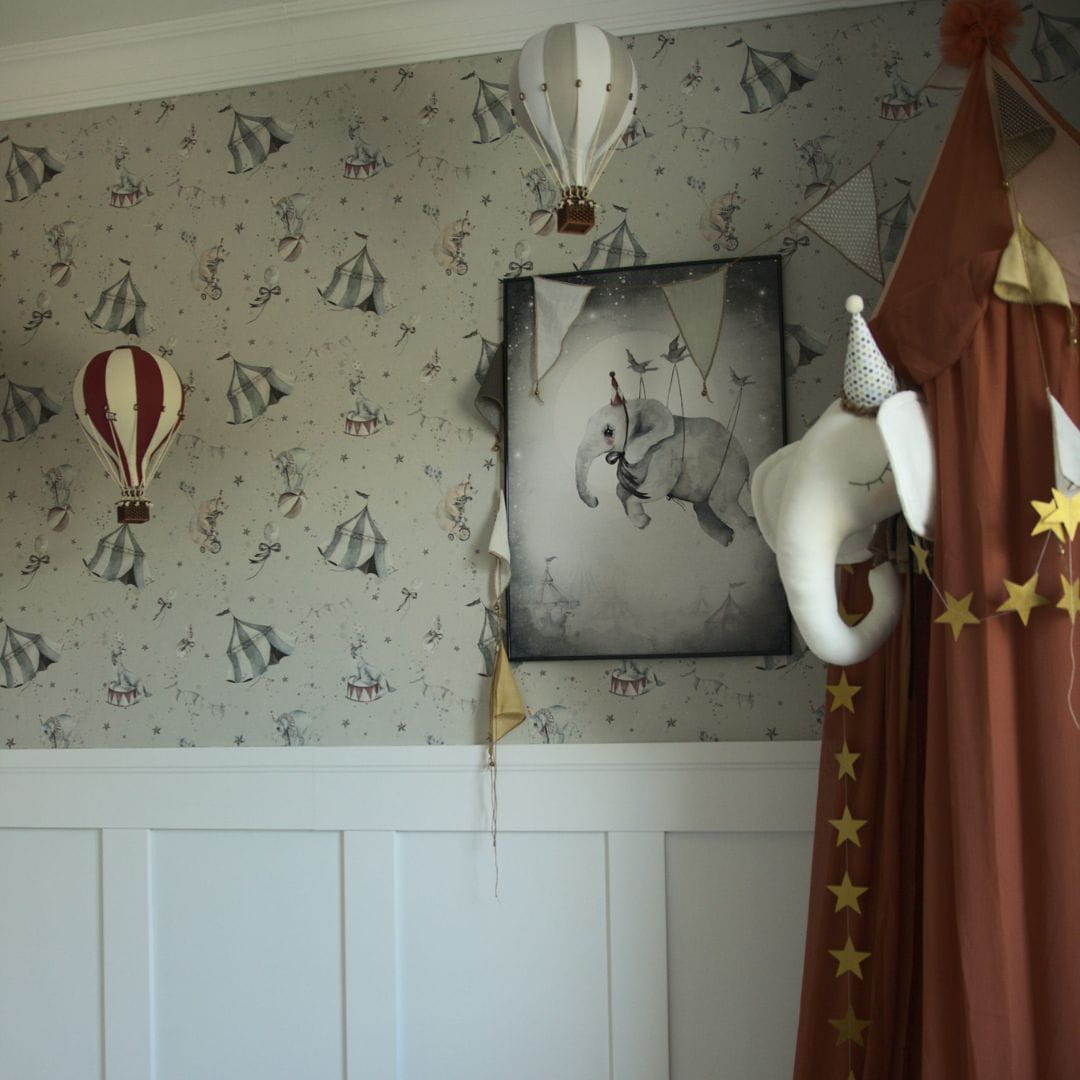 To właśnie jest cyrk MRS MANOE, polskiej ilustratorki, która stworzyła przepiękne ilustracje, na podstawie których powstał cyrkowy wzór tapety. Stary, opuszczony, niszczejący cyrk ze szczęśliwymi, wolnymi od niego zwierzętami.