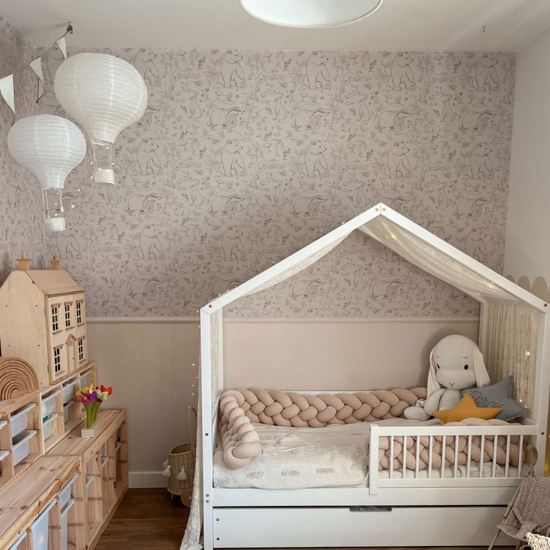 Beżowa tapeta ze zwierzętami Dekorillo - pokój dziecka z motywem leśnym
