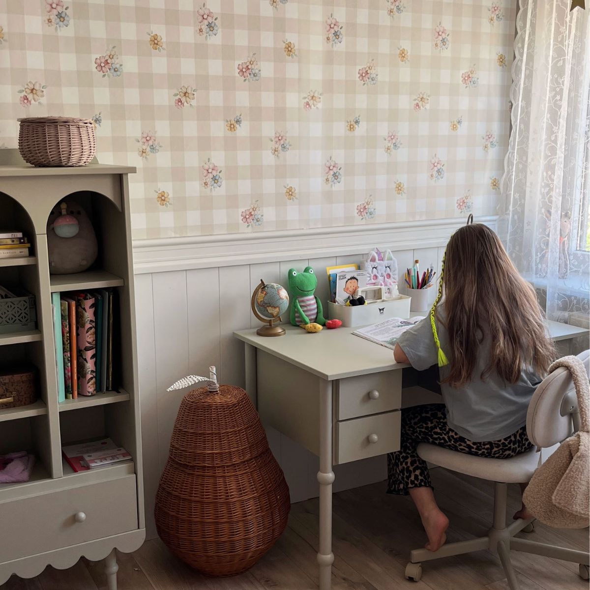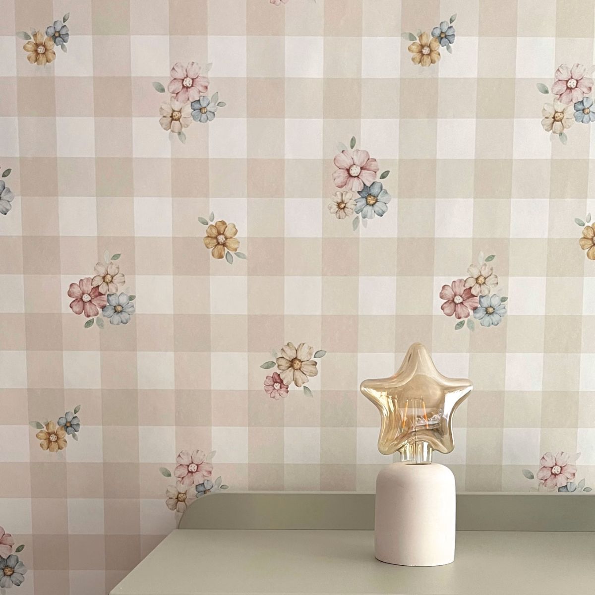 DEKORILLO - TAPETA DZIEWCZĘCA PASTEL FLOWERS BEŻOWA KRATA