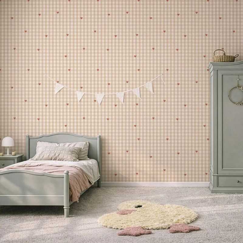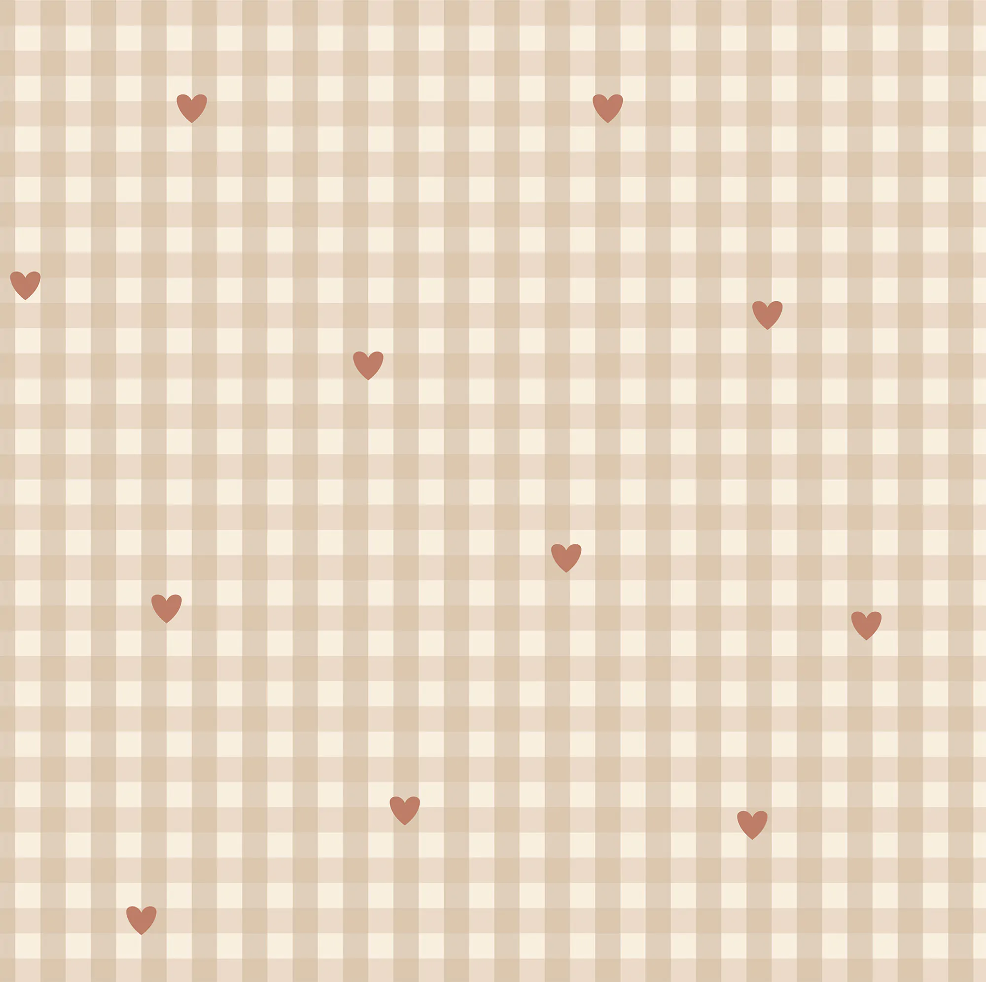 Tapeta w kratkę i serca beżowa – ponadczasowy spokój w stylu vichy