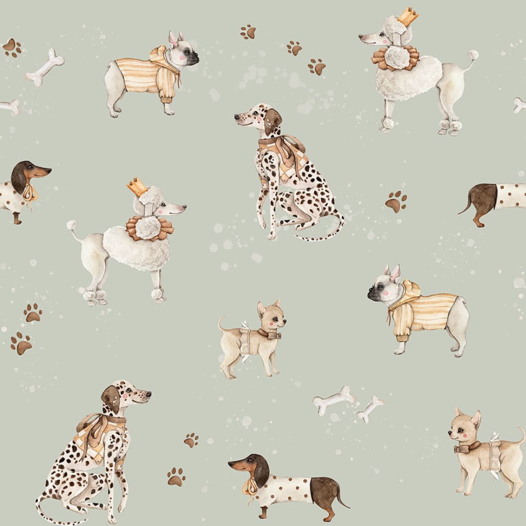 DEKORILLO TAPETA W PIESKI I LOVE DOGS MIĘTOWA - PRÓBKA TAPETY