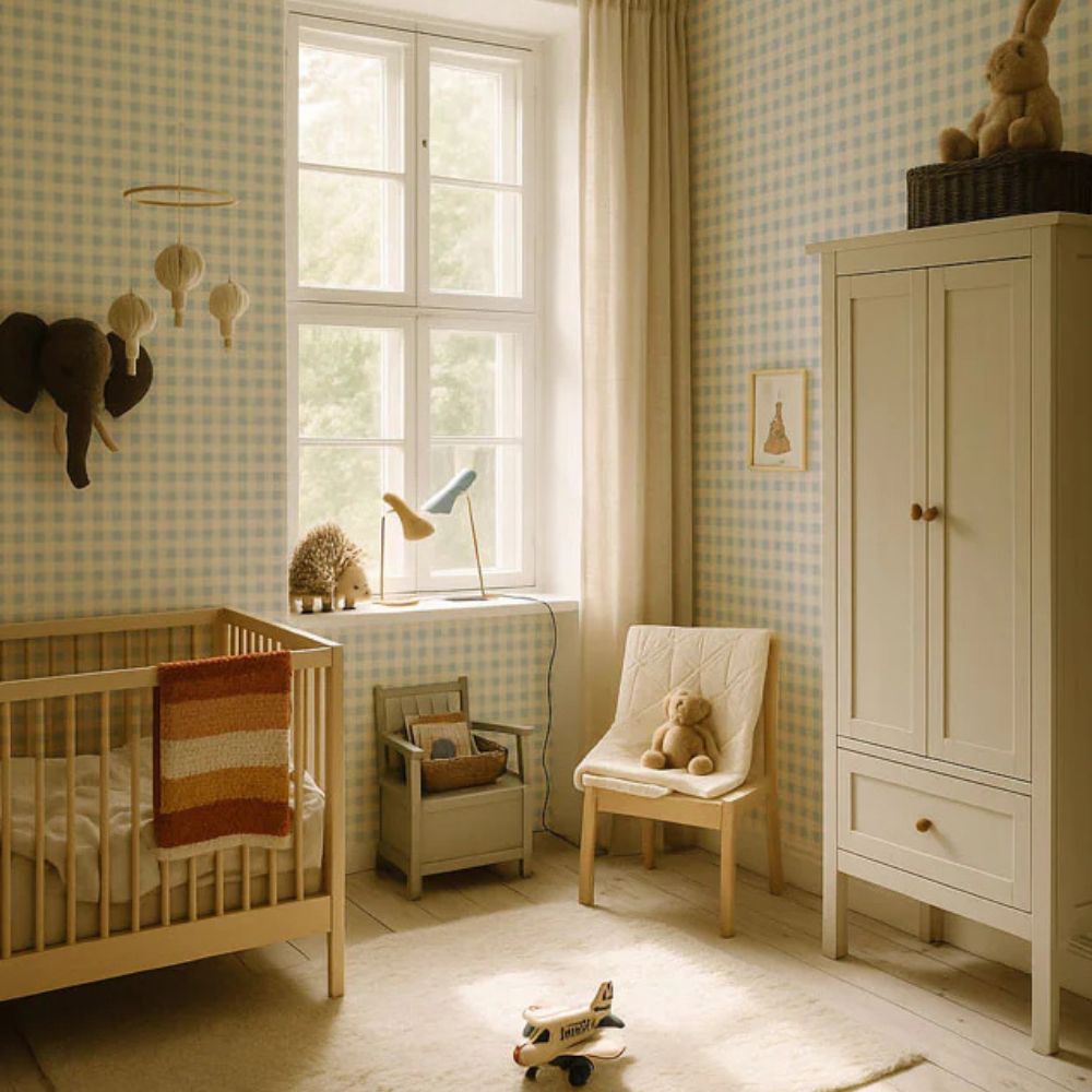 Szukasz wzoru, który jest jednocześnie klasyczny, elegancki i przytulny? Tapeta w mini kratkę to propozycja, która udowadnia, że drobny detal ma wielką moc. Wielkość każdego kwadracika to zaledwie 2,5 cm, co sprawia, że wzór jest subtelny, nienachalny i stanowi idealne tło dla dziecięcego świata.