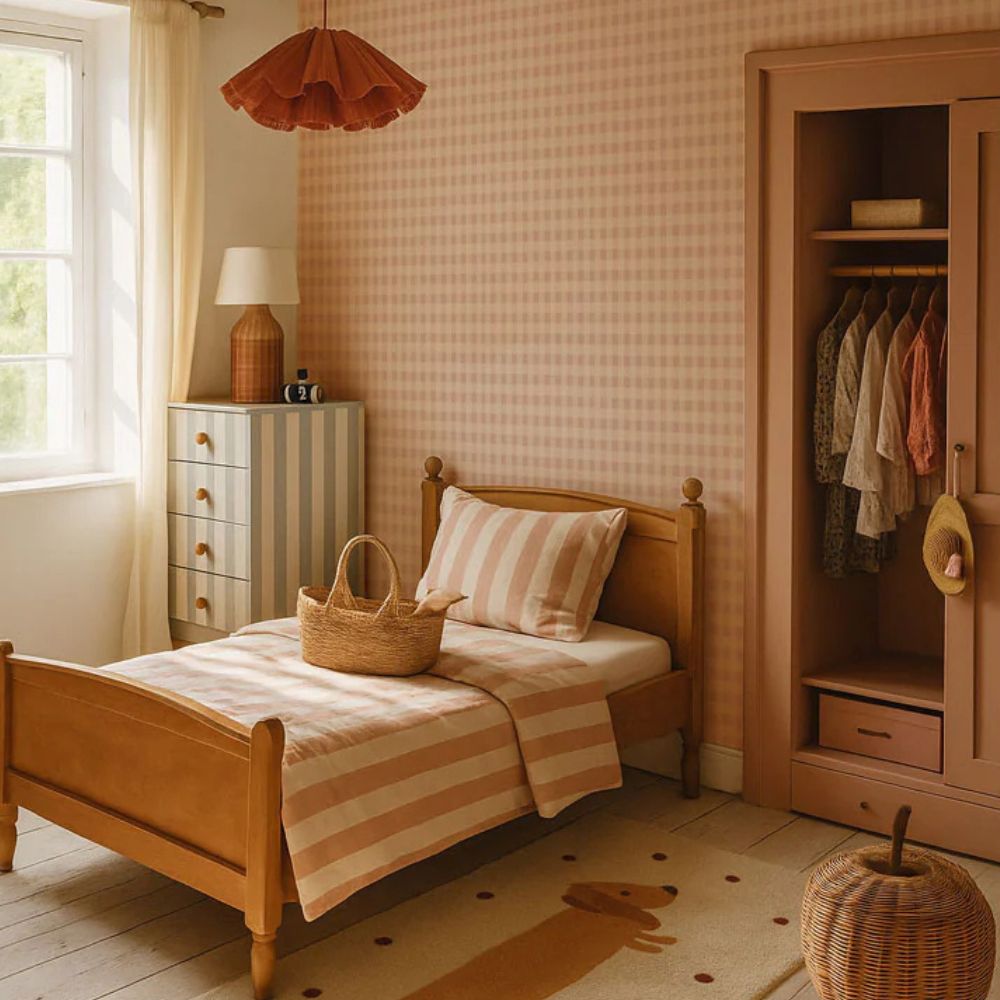 Szukasz tapety, która wprowadzi do pokoju dziewczynki ciepło i spokój, ale unikasz krzykliwych kolorów? Check Minimini Pink Cream to propozycja, którą pokochasz od pierwszego wejrzenia. Jej bazą nie jest jaskrawa landrynka, lecz pyszny, kremowy budyń – kolor, który otula wnętrze i sprawia, że staje się ono niezwykle przytulne.