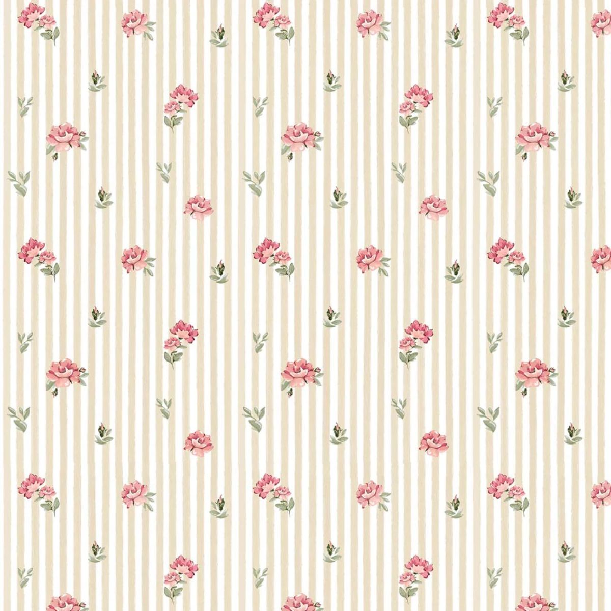 DEKORNIK - TAPETA PINK ROSES ON STRIPES