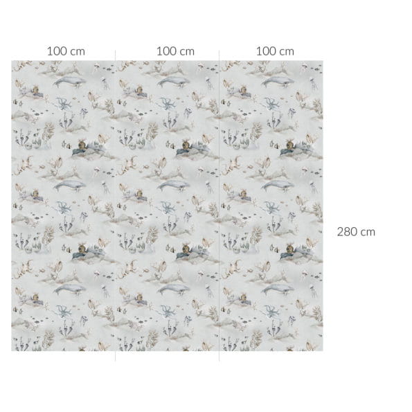 Wąskie pasy tapety (100 cm) gwarantują to, że tapetę dopasujemy prawie idealnie do szerokości ściany. A zapętlony wzór – każdy z pasów wygląda identycznie – sprawia, że elementy wzoru idealnie układają się na ścianie, jeśli kleimy tapetę od sufitu (oczywiście na ścianie bez skosów :). Dzięki temu nadwyżek materiału jest naprawdę niewiele.