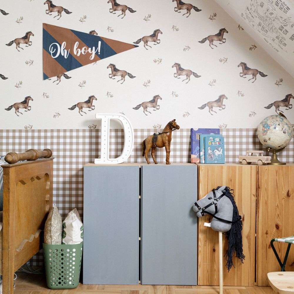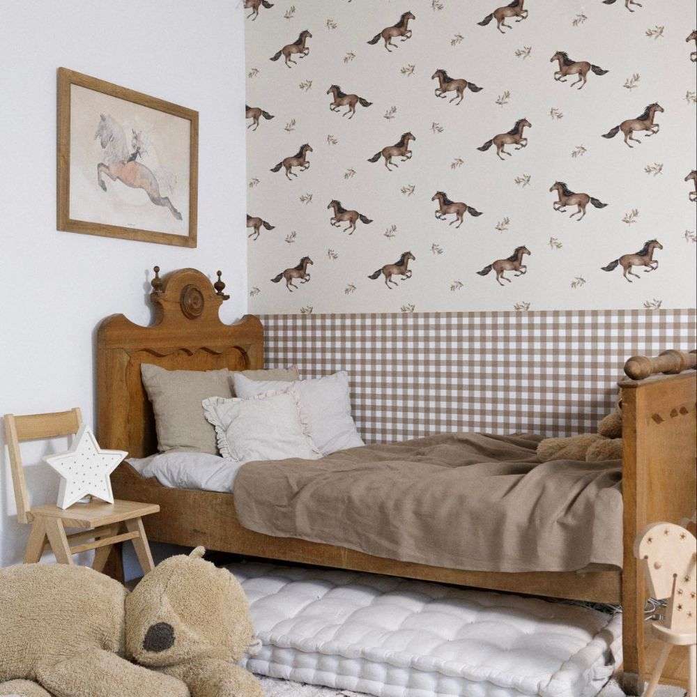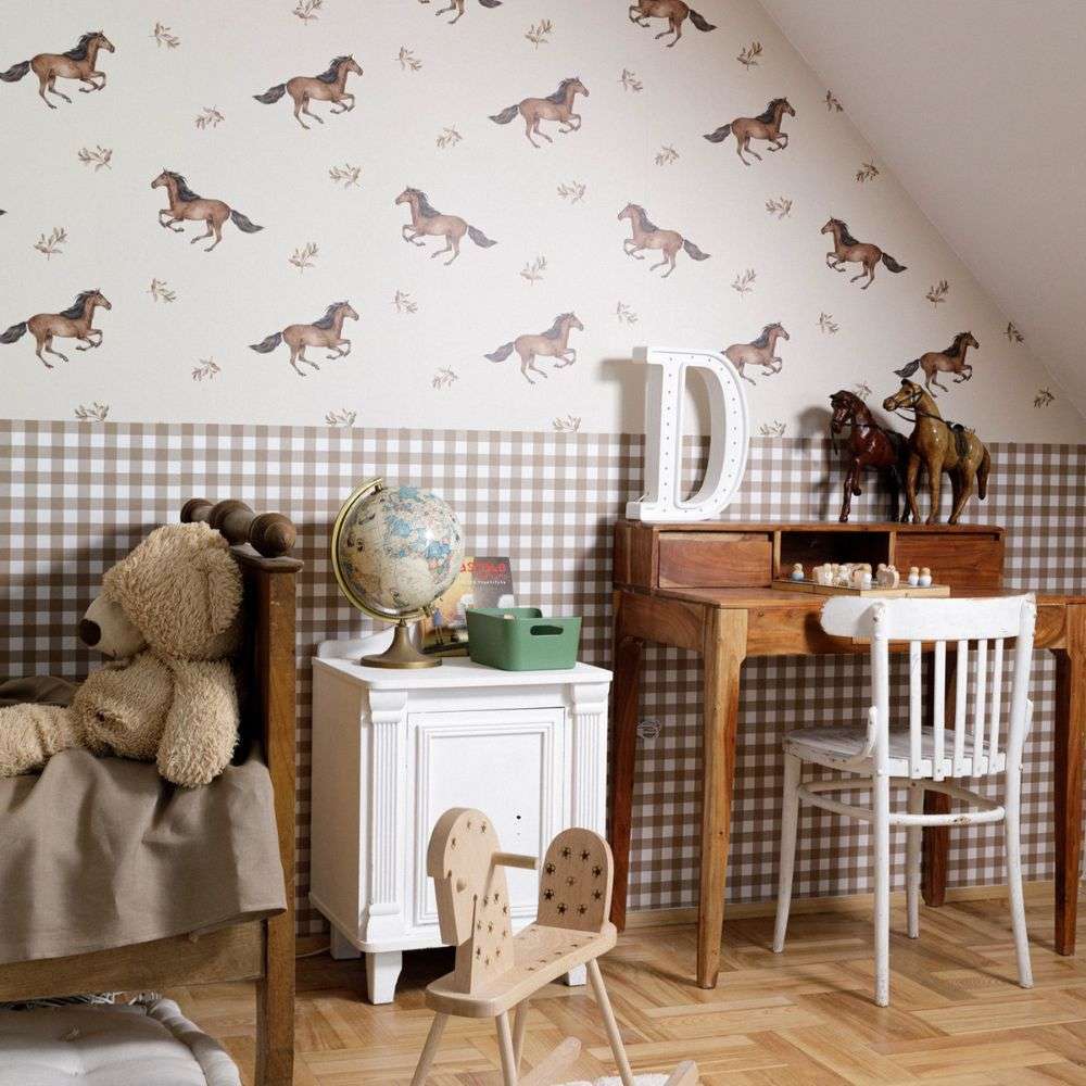 Tapeta w konie i kratkę do pokoju dziewczynki