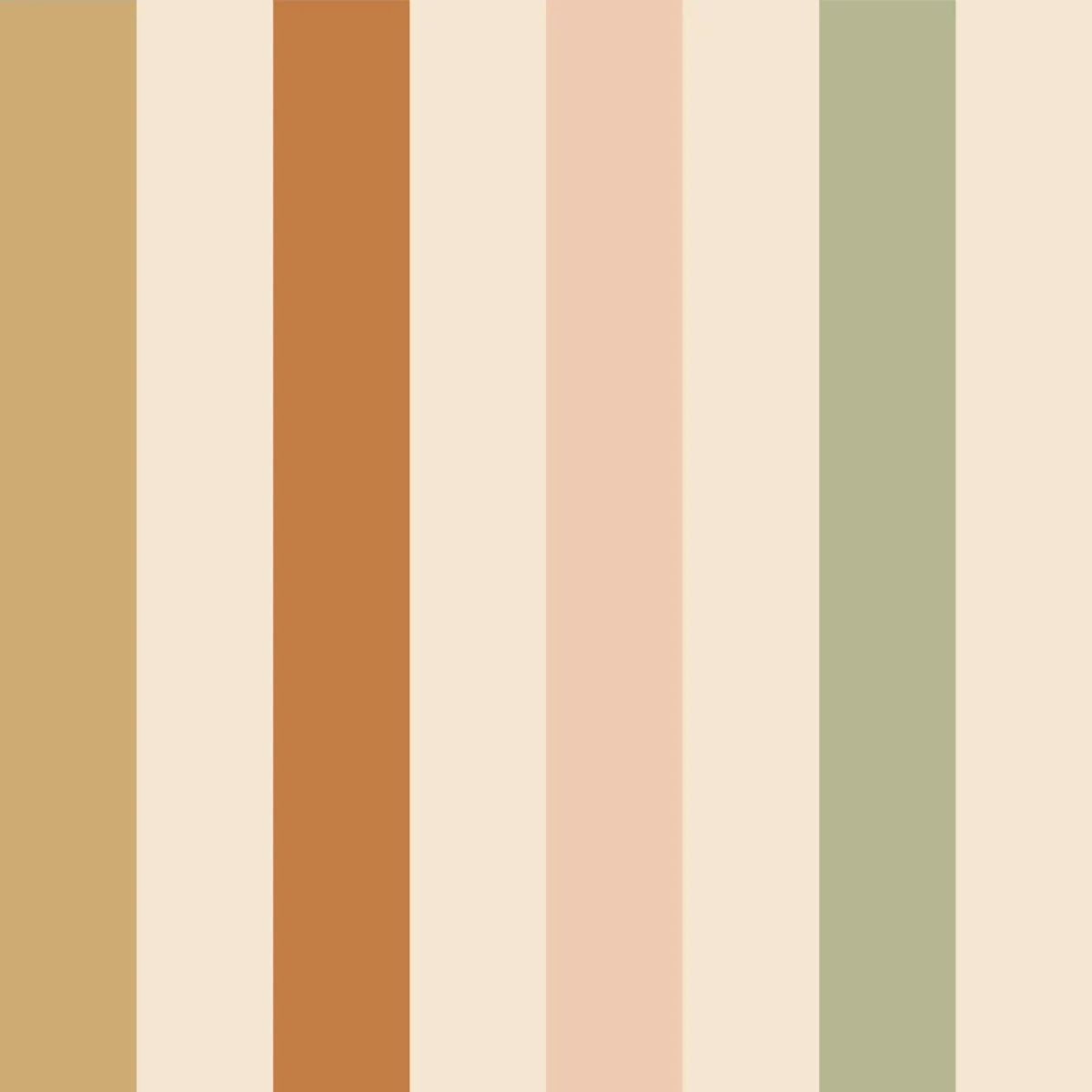 Tapeta w paski w naturalnych, cieplutkich kolorach, stworzona z myślą o przytulnych, dziecięcych wnętrzach. Na beżowym tle układają się delikatne pasy o szerokości 5 cm – na tyle wąskie, by wzór był subtelny, ale na tyle wyraziste, by dodać charakteru każdej przestrzeni.