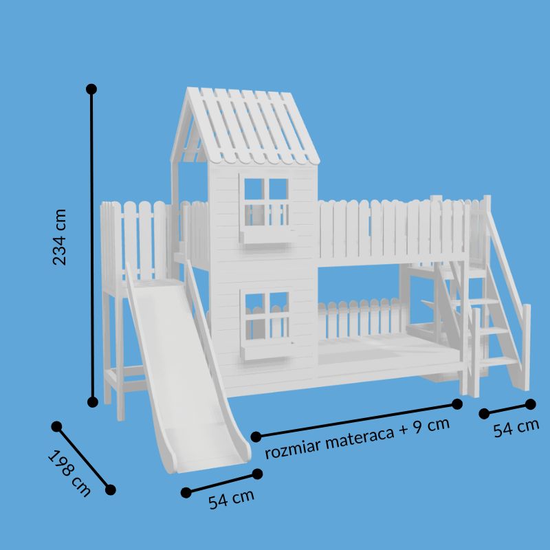 DREAM BEDS - ŁÓŻKO PIĘTROWE DOMEK ZE ZJEŻDŻALNIĄ I SCHODKAMI