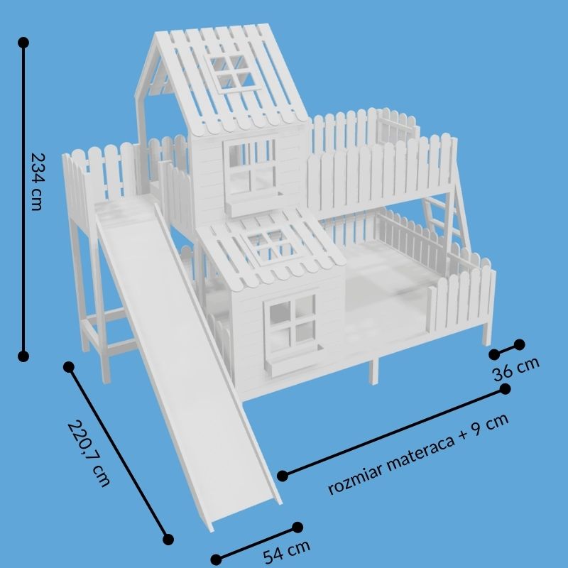 Szukasz mebla, który zmieni pokój Twoich dzieci w krainę niekończącej się przygody? Łóżko piętrowe domek z daszkiem, płotkiem i okiennicami, a dodatkowo zjeżdżalnią! to połączenie skandynawskiego designu, najwyższego bezpieczeństwa i funkcjonalności, która zachwyci każdego małego odkrywcę. To nie jest zwykłe miejsce do spania – to prywatna baza, zamek i urokliwy dom w jednym, stworzony z myślą o radosnym dzieciństwie i spokojnym śnie rodzeństwa.