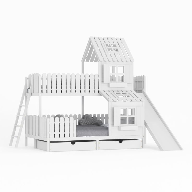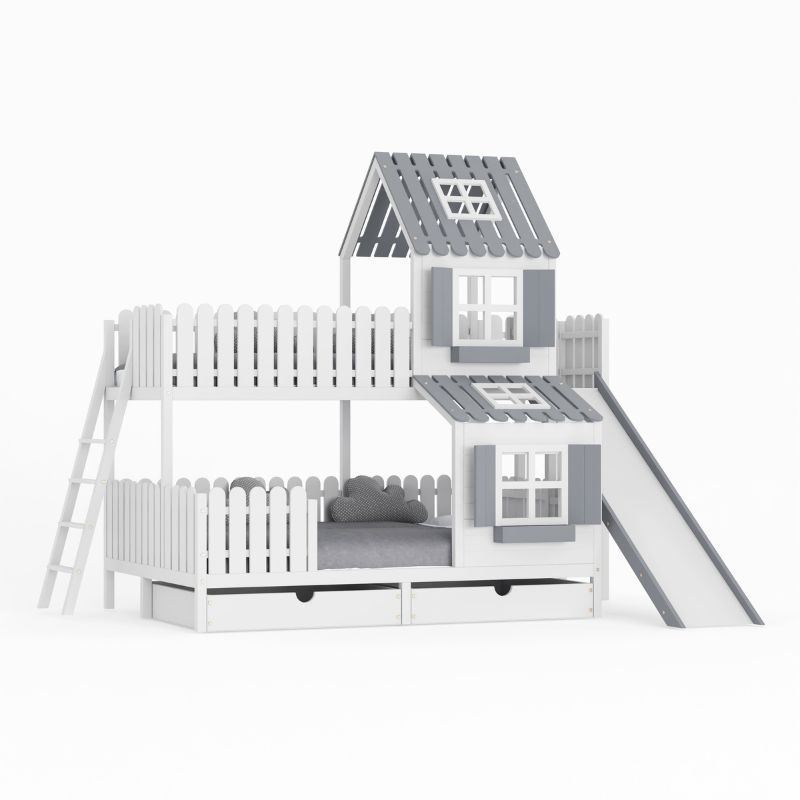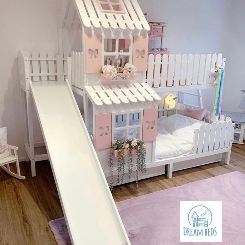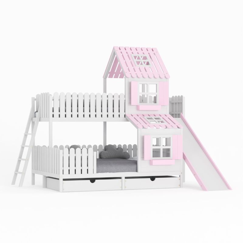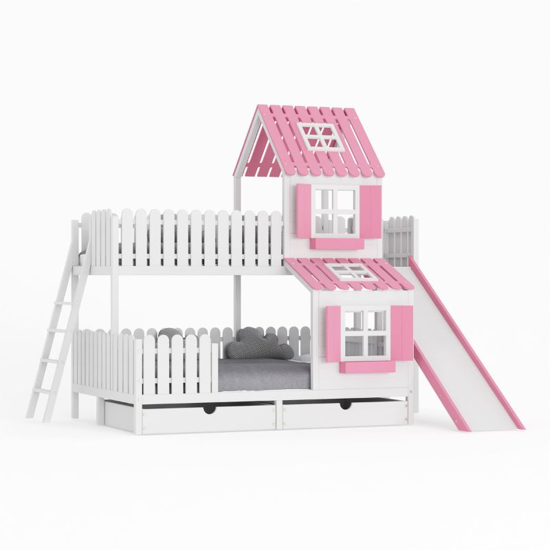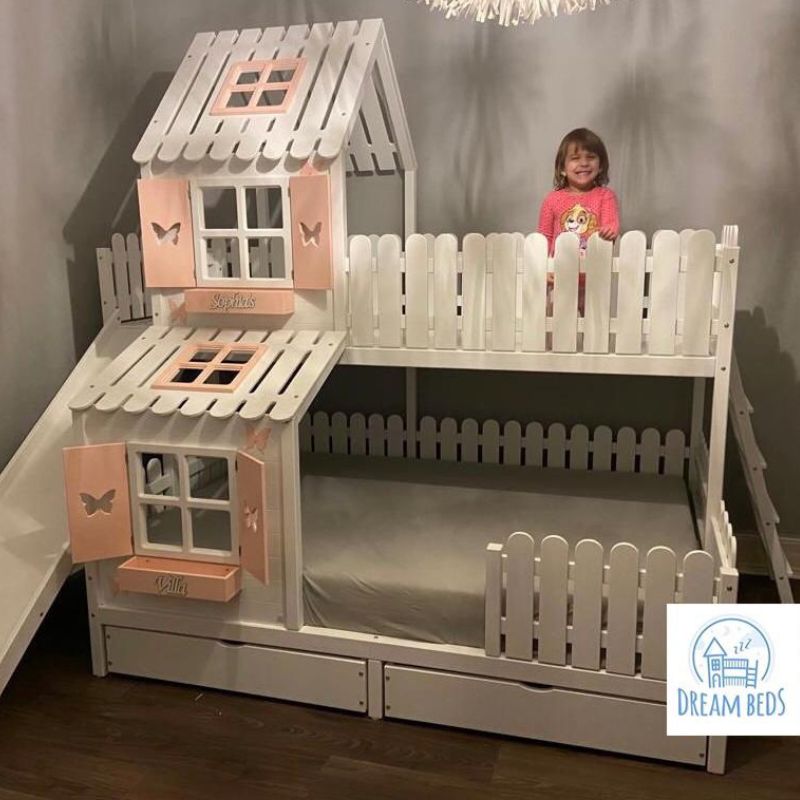 DREAM BEDS - ŁÓŻKO PIĘTROWE DOMEK ZE ZJEŻDŻALNIĄ