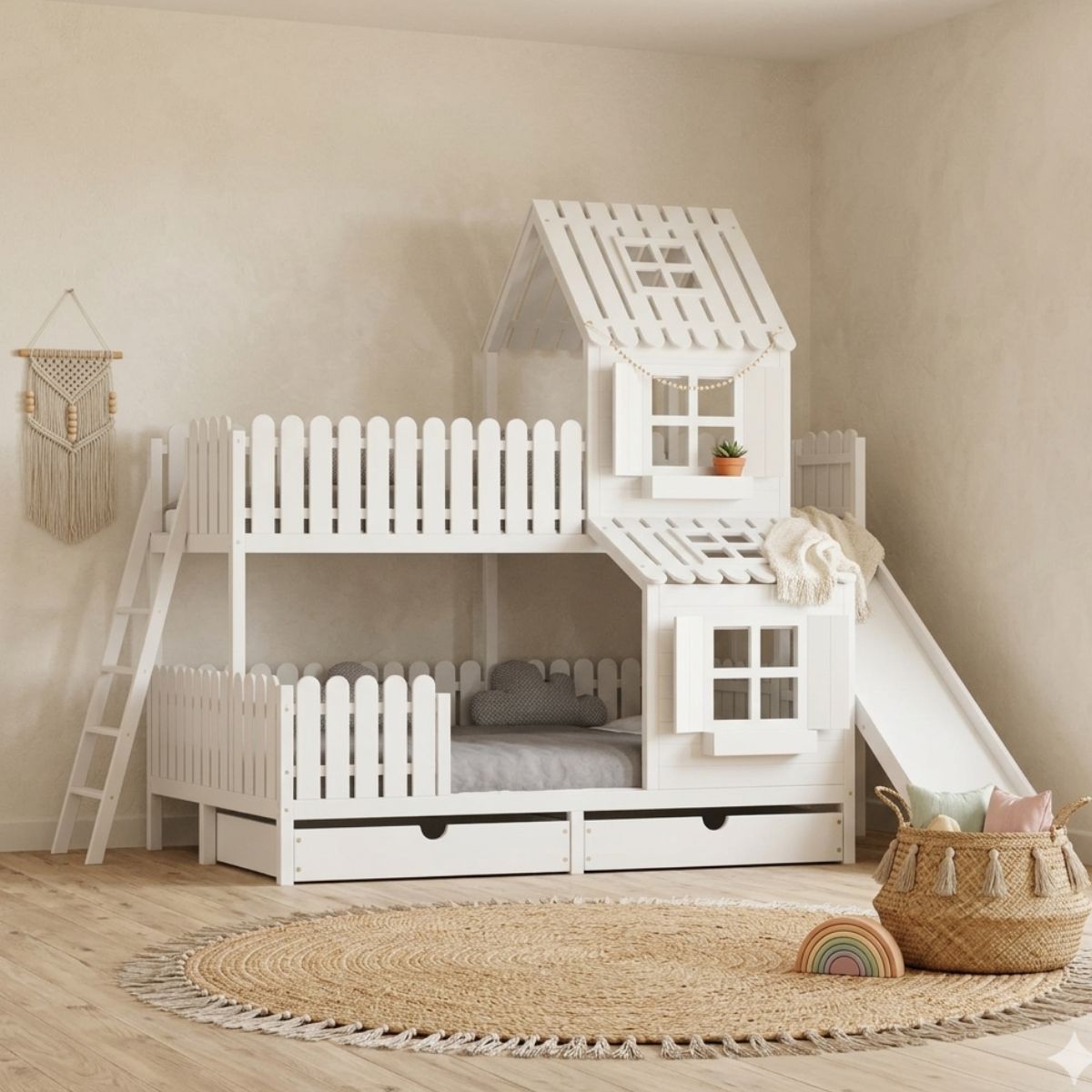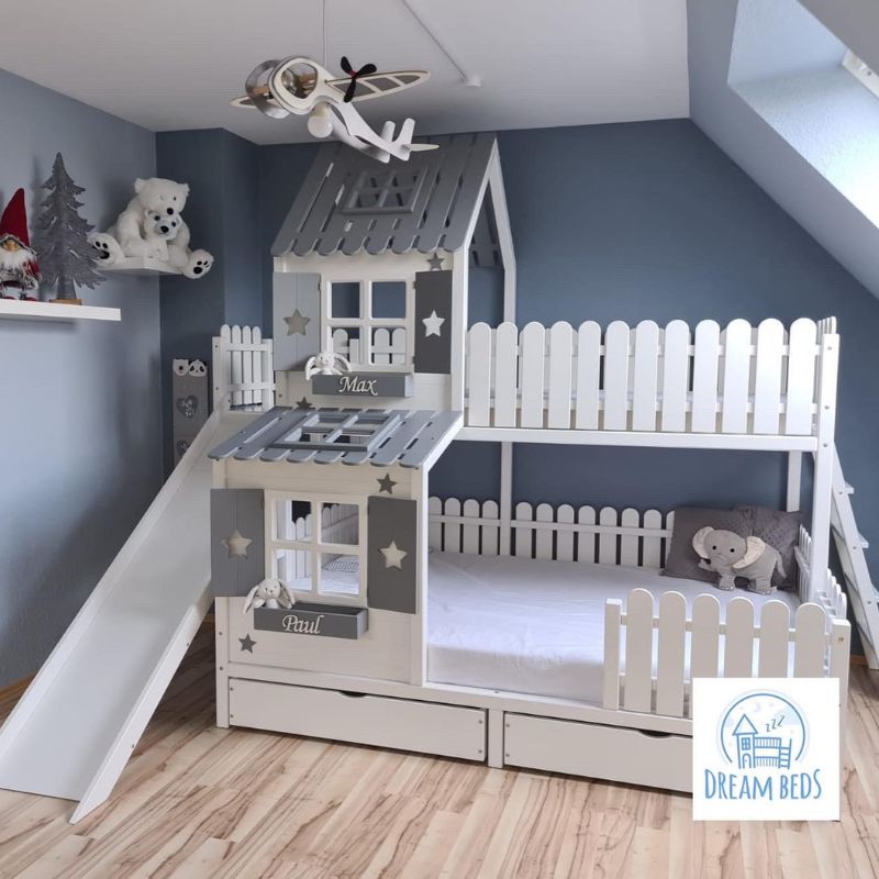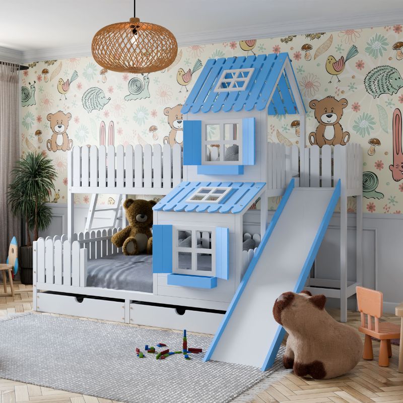 Łóżko piętrowe domek ze zjeżdżalnią – magiczna przestrzeń dla rodzeństwa