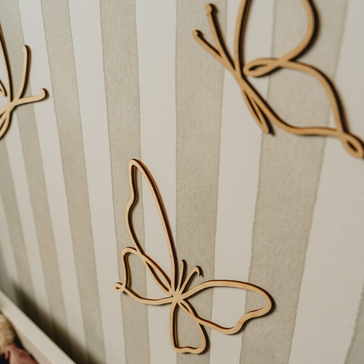 Drewniane motylki w stylu one-line – dekoracja minimalistyczna do pokoju dziecięcego