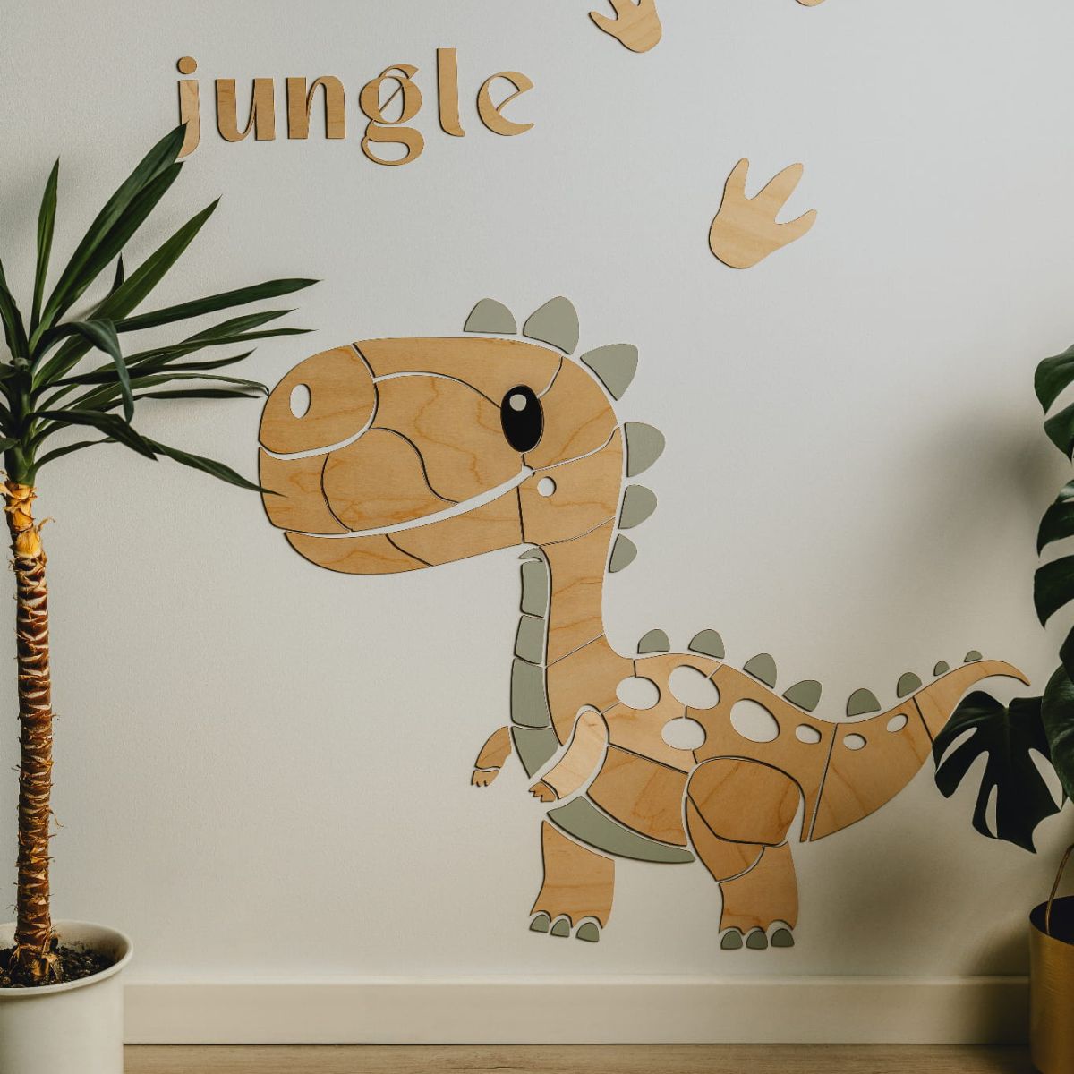 Drewniana dekoracja ścienna Dino T-Rex – uroczy dinozaur w formie puzzli