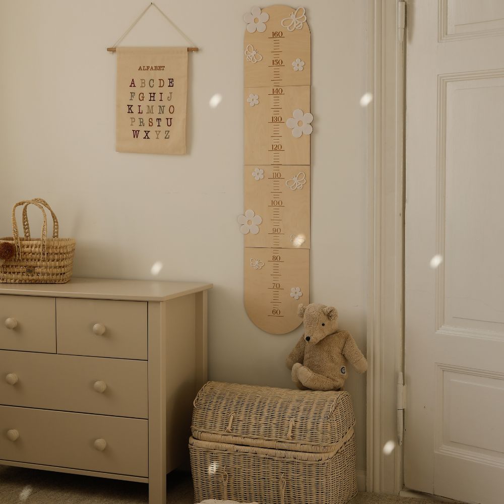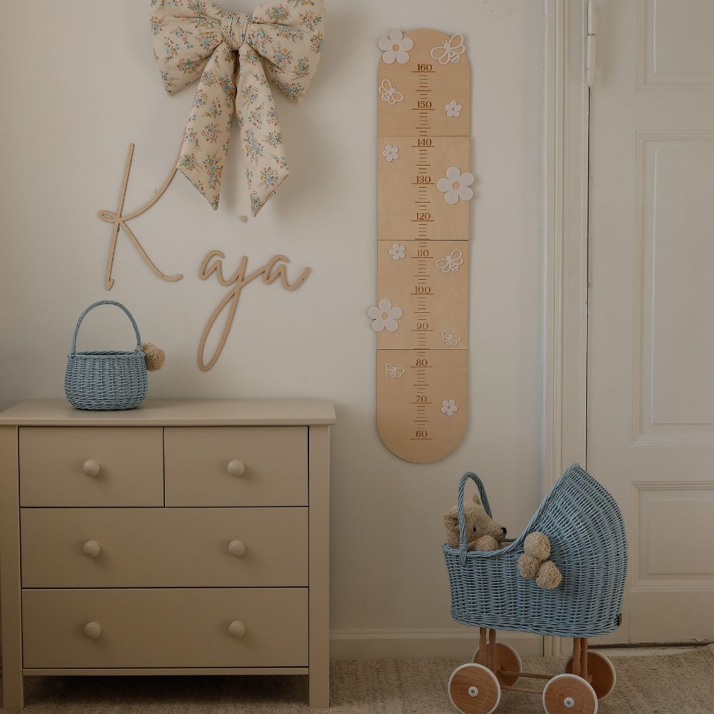 Dzieci rosną szybciej, niż się spodziewasz – jeden dzień trzymają Cię za rękę, a następnego już biegną ku nowym przygodom. Miarka wzrostu Stokrotki to nie tylko praktyczny dodatek do dziecięcego pokoju, ale także piękna pamiątka, dzięki której każdy centymetr wzrostu staje się częścią wyjątkowej historii. Pierwszy dzień w przedszkolu, zgubiony ząbek, pierwsza samodzielnie założona para butów – każda kreska na miarce to wspomnienie, które zostanie z Wami na zawsze!