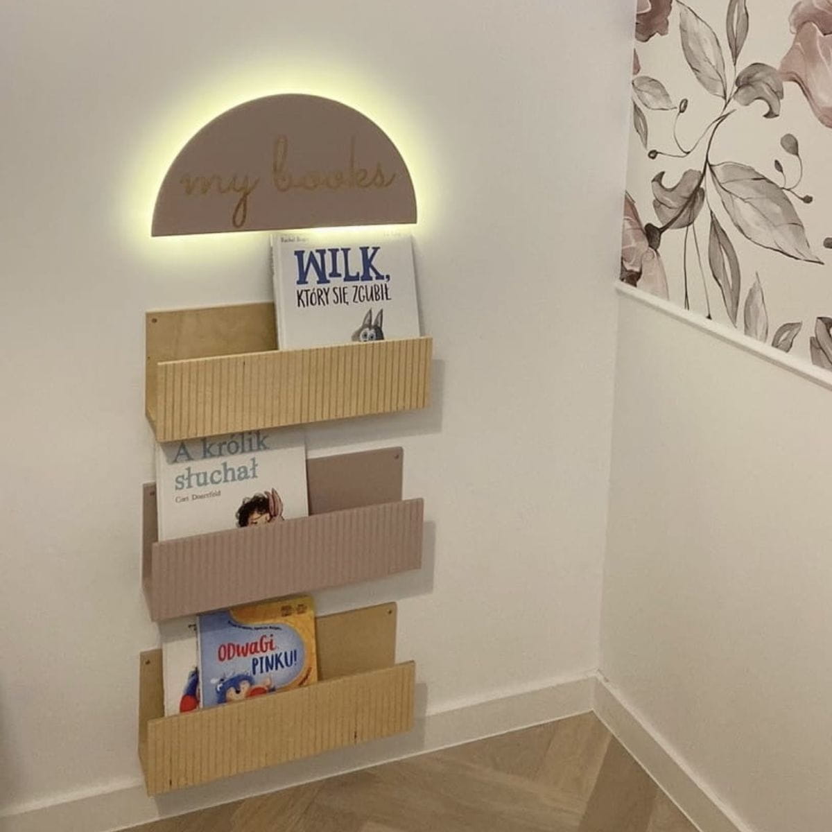 Dodaj wyjątkowy element wystroju do pokoju dziecka dzięki półce biblioteczce MY BOOKS! Ten praktyczny, a zarazem stylowy zestaw składający się z trzech półek z podświetlanym łukiem to doskonałe rozwiązanie do przechowywania ulubionych książek i dekoracji. Zapewnia nie tylko wygodę w organizacji przestrzeni, ale także wprowadza do wnętrza ciepły, przytulny klimat.