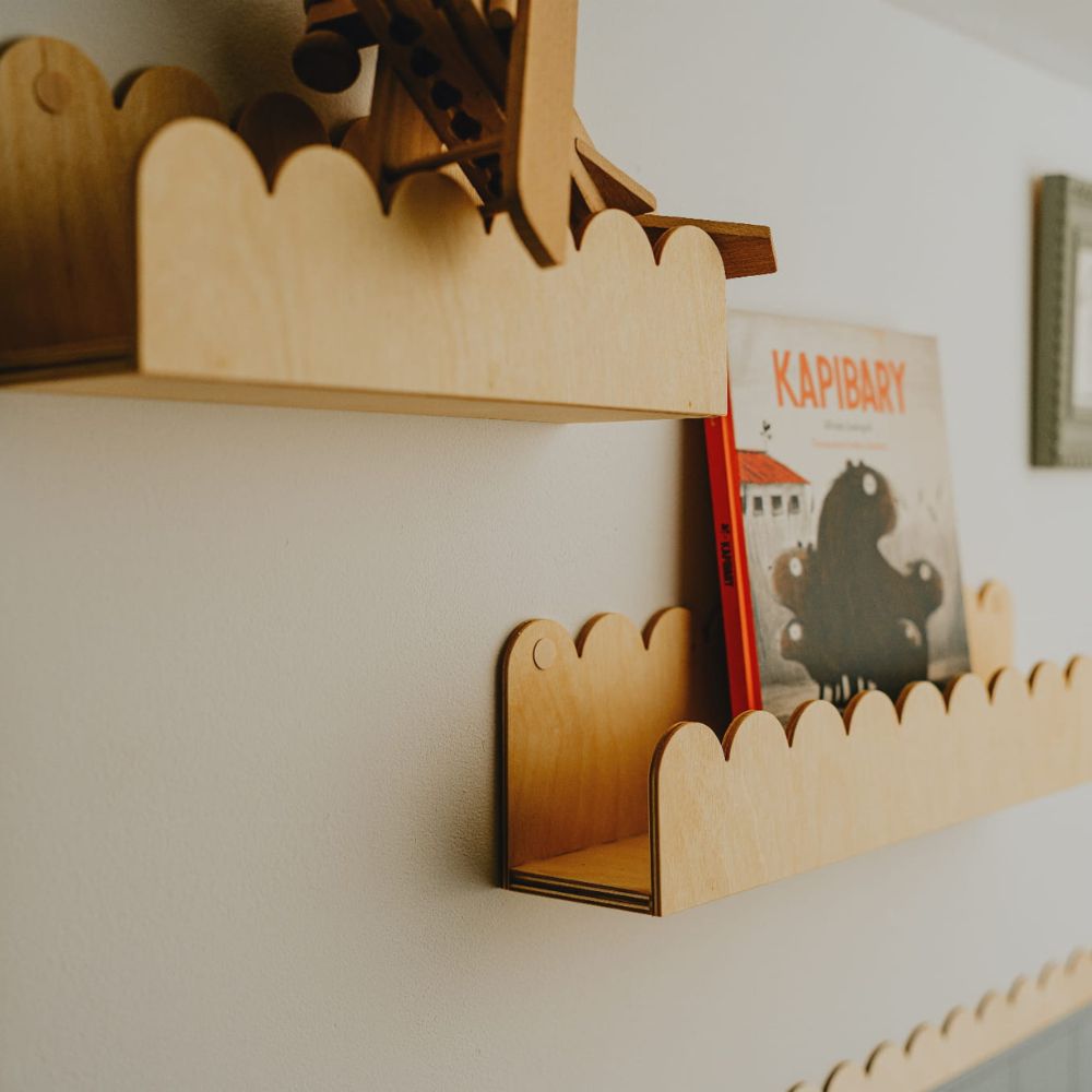 Szukasz wyjątkowego dodatku, który połączy funkcjonalność z estetyką? Drewniana półka Falbanka to doskonały wybór dla każdego dziecięcego pokoju! Jej delikatnie falujący kształt dodaje wnętrzu lekkości i przytulnego charakteru, tworząc idealne miejsce na książeczki, figurki czy inne drobiazgi.