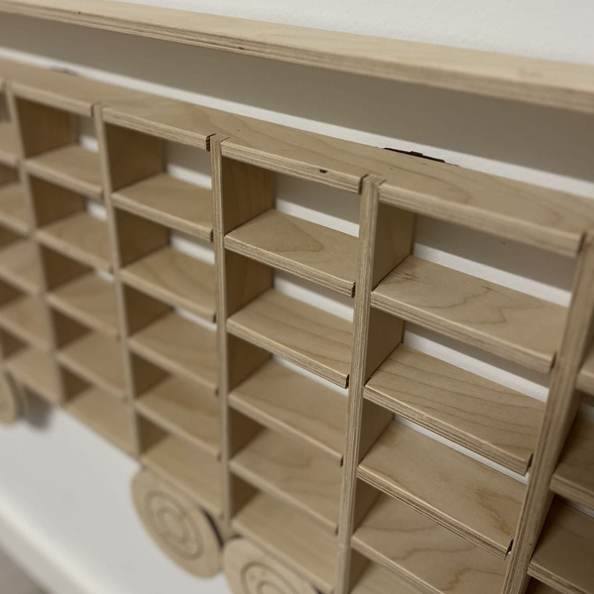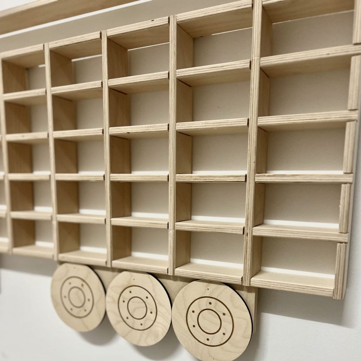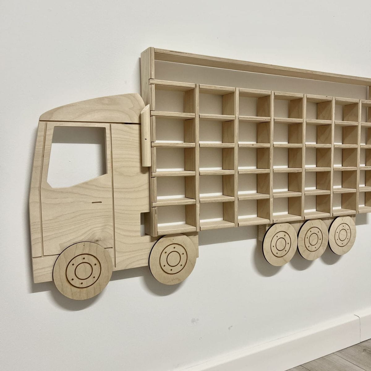 Półki na resoraki w wersji naturalnej to doskonałe rozwiązanie dla wszystkich miłośników małych autek, którzy szukają solidnego i estetycznego sposobu na przechowywanie swojej kolekcji. Najwyższy poziom półki bez pionowych przegródek idealnie nadaje się na lawety, ciężarówki i inne większe pojazdy.