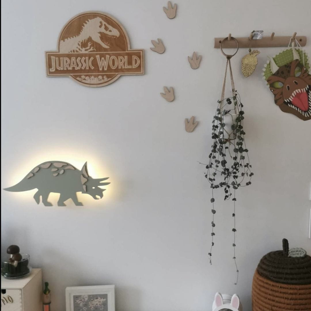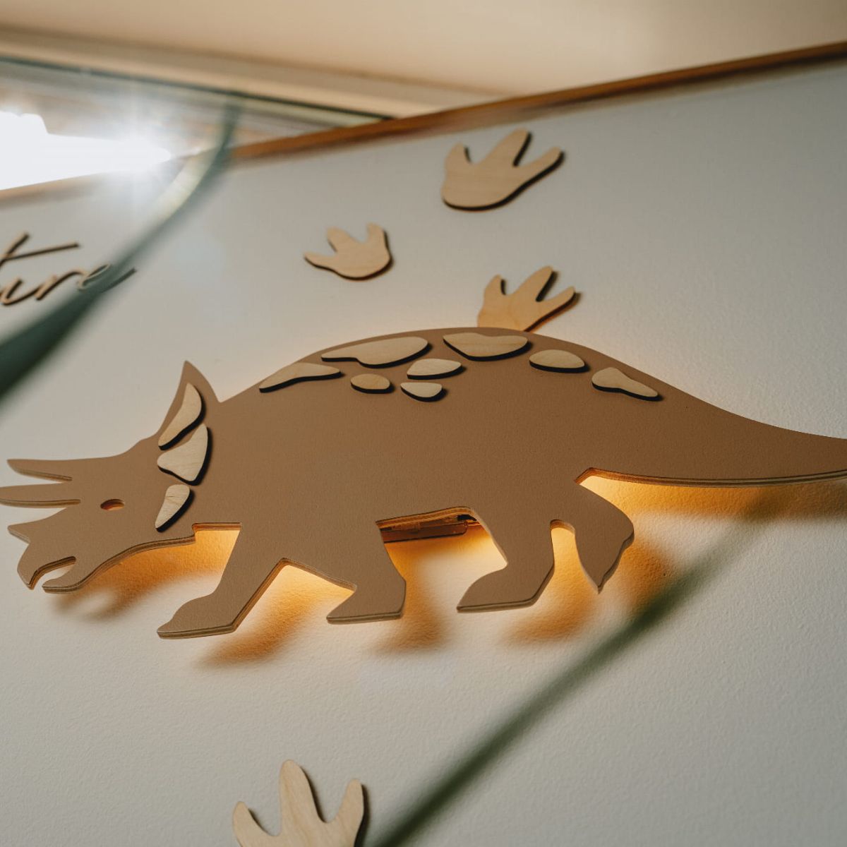 DREWNIAKOWA - LAMPKA DREWNIANA DLA DZIECI DINOZAUR TRICERATOPS