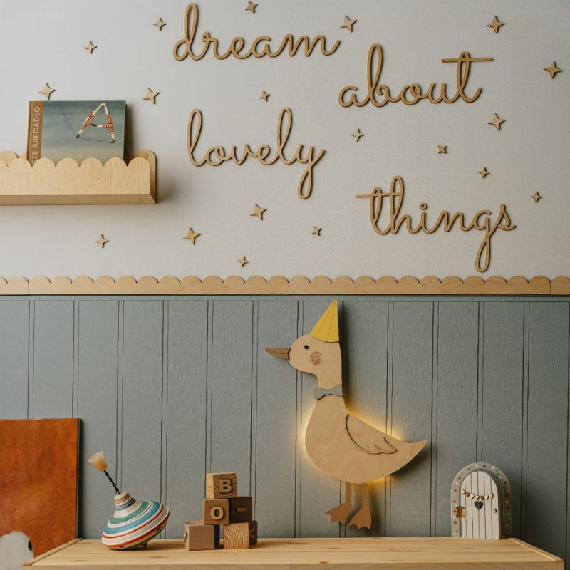 Lampka nocna Gąska z drewna – subtelne światło i elegancka dekoracja do pokoju dziecka