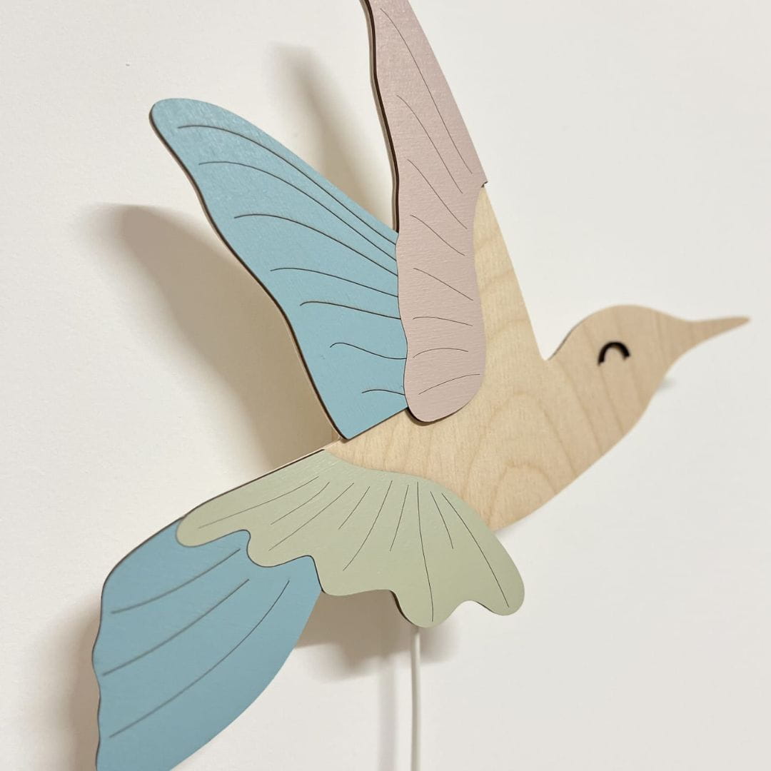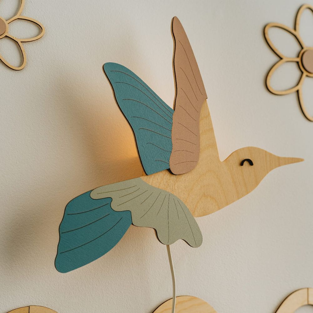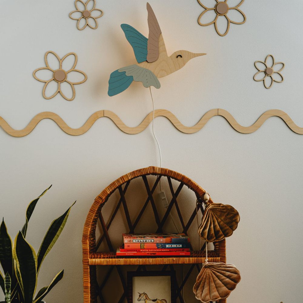 Lampka nocna Koliber z drewna – subtelne światło i elegancka dekoracja do pokoju dziecka
