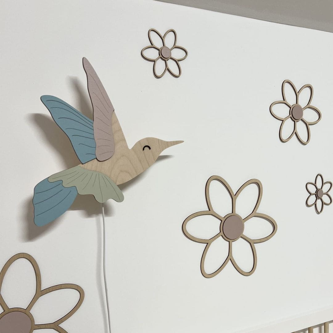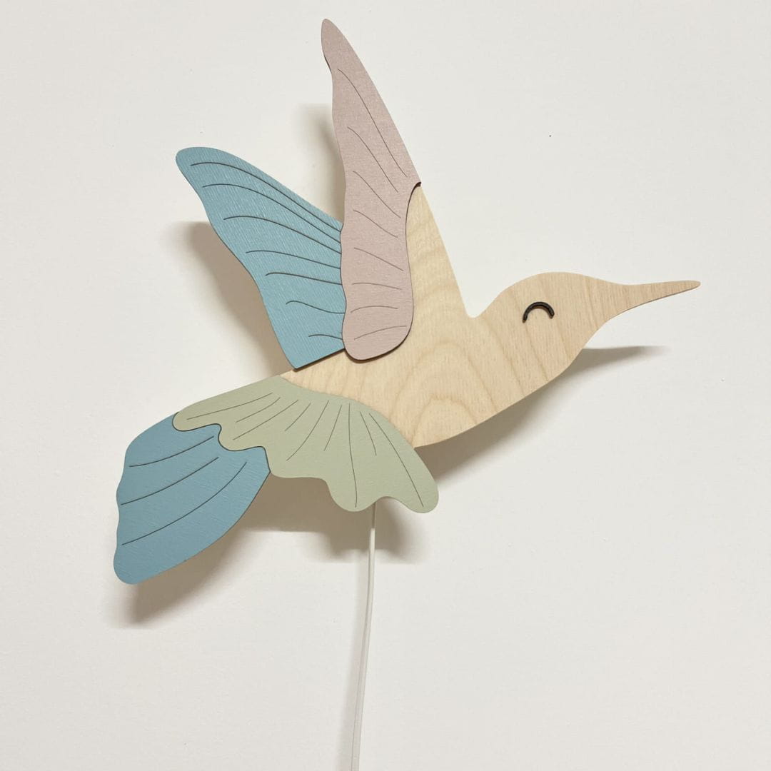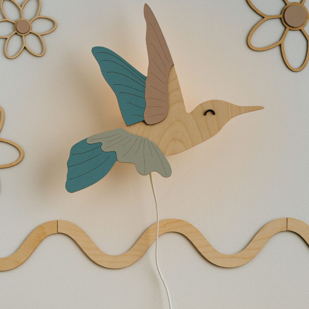 Lampka nocna Koliber z drewna – subtelne światło i elegancka dekoracja do pokoju dziecka