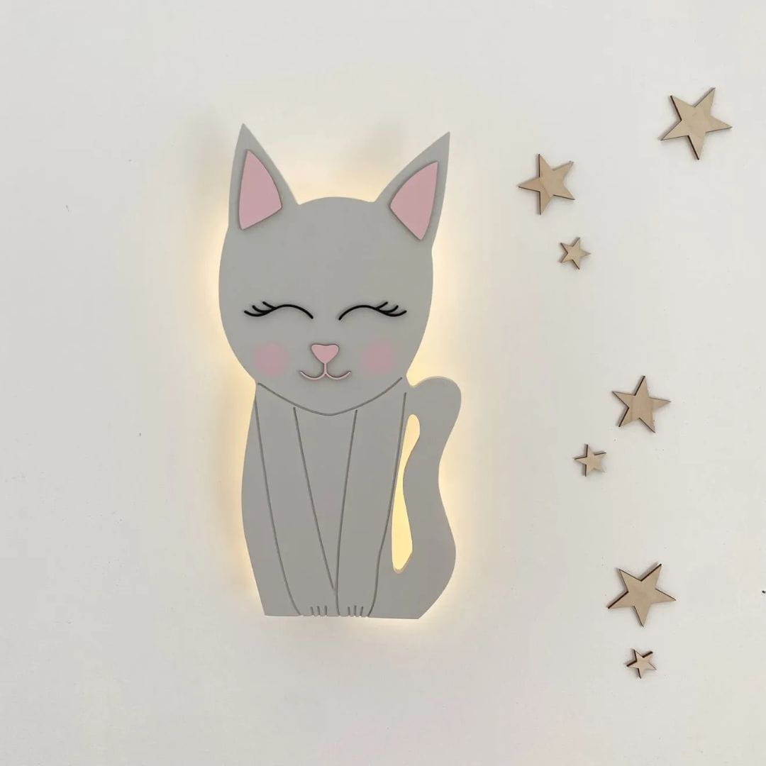 DREWNIAKOWA - LAMPKA DREWNIANA DLA DZIECI KOTEK