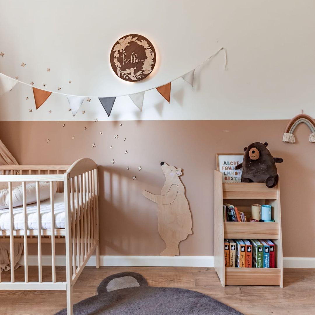 - Ekologiczne materiały – Wykonana z wysokiej jakości sklejki drewna liściastego. Lampka jest malowana ekologicznymi farbami, bez ostrych zapachów i szkodliwych substancji, co sprawia, że jest idealna do użytku w pokojach dziecięcych.