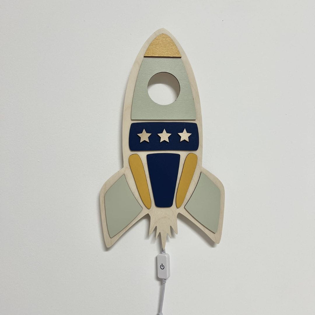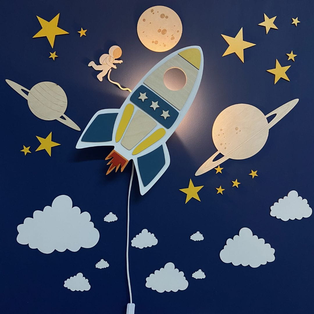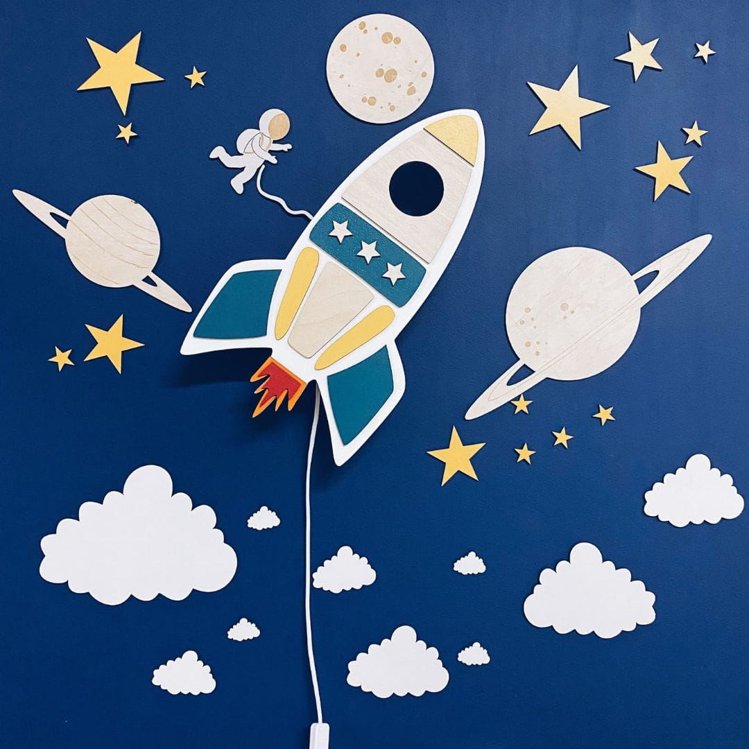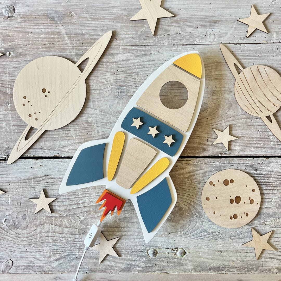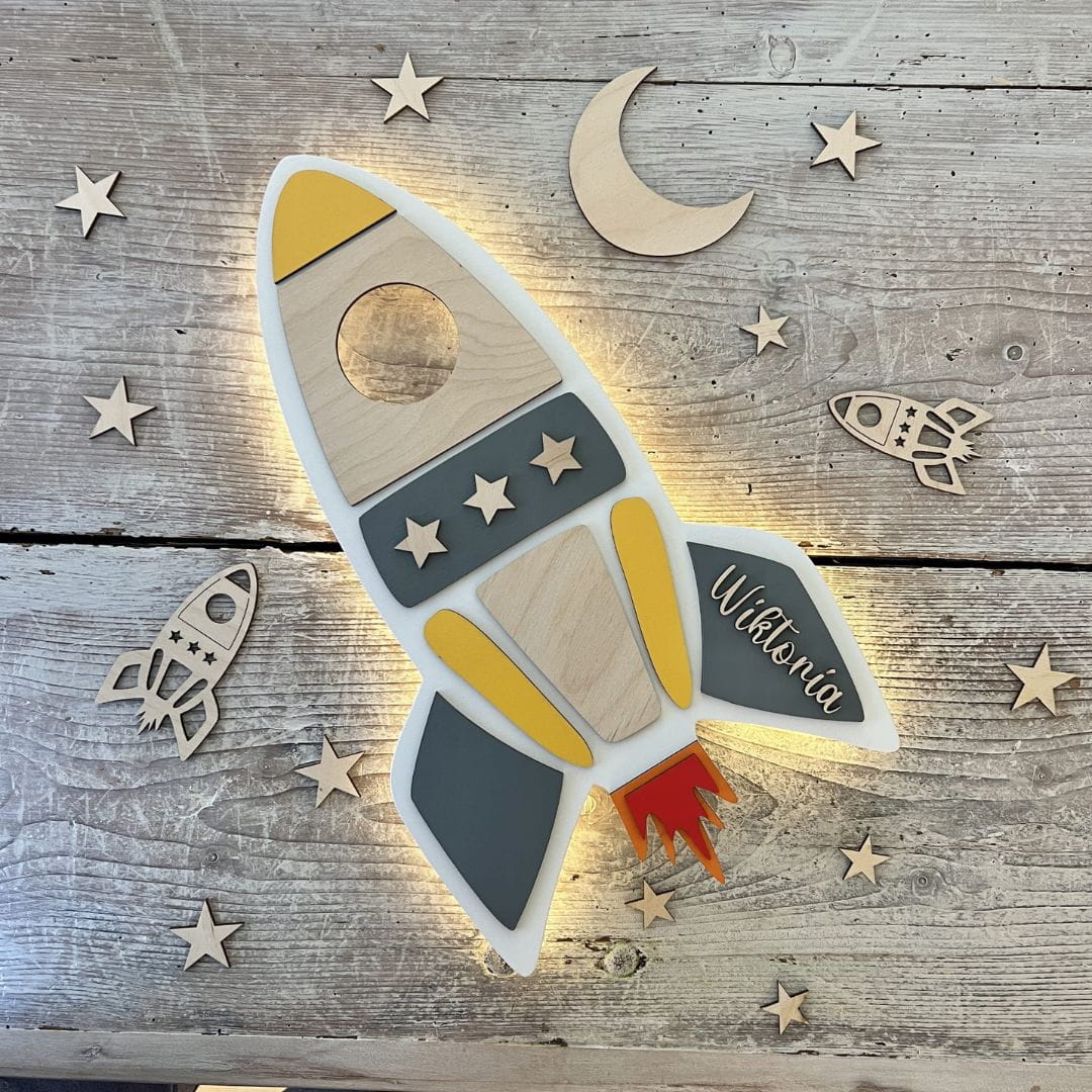 DREWNIAKOWA - LAMPKA DREWNIANA DLA DZIECI RAKIETA KOSMICZNA