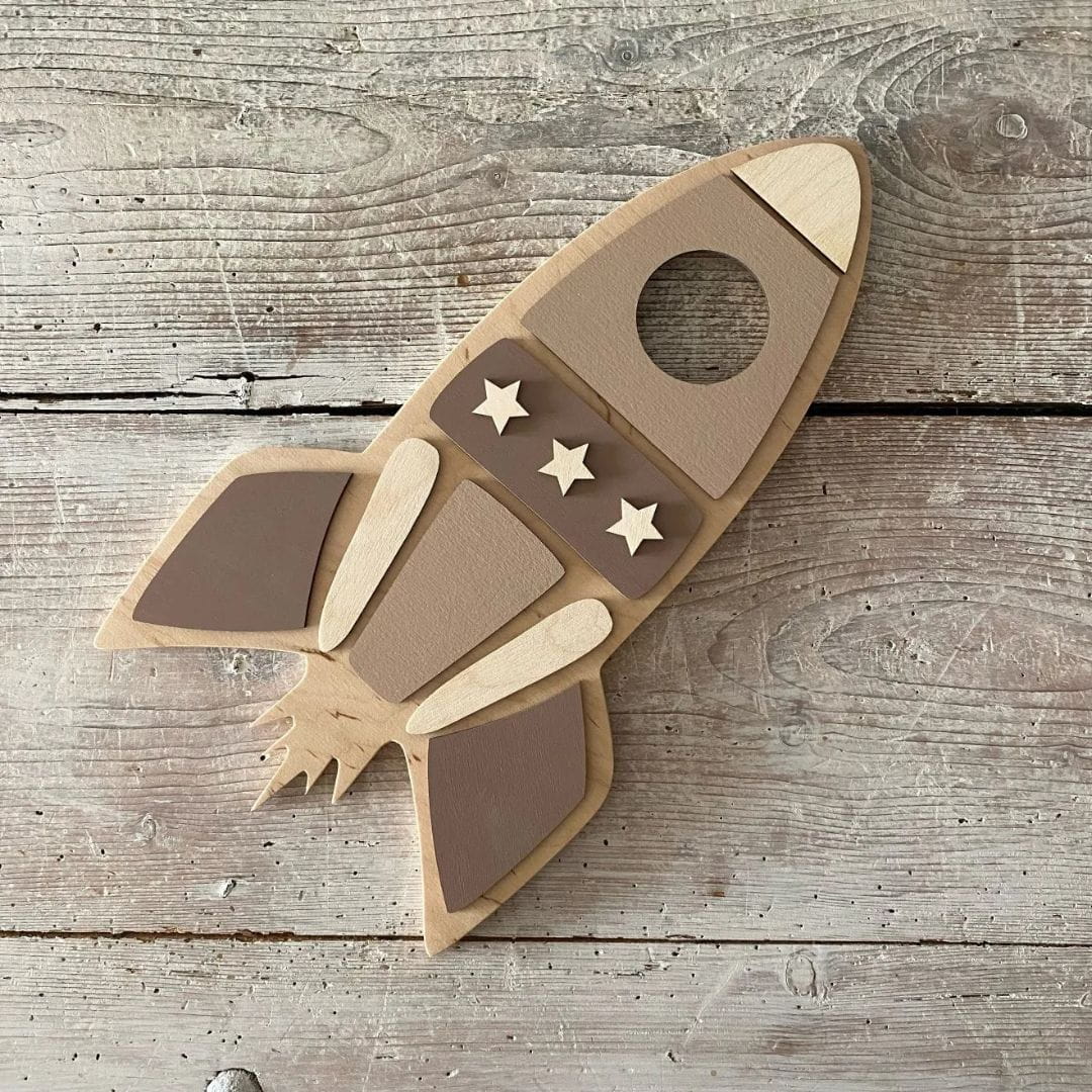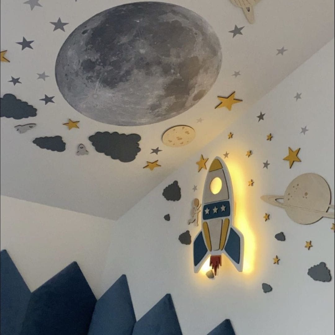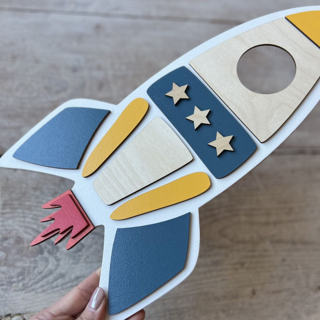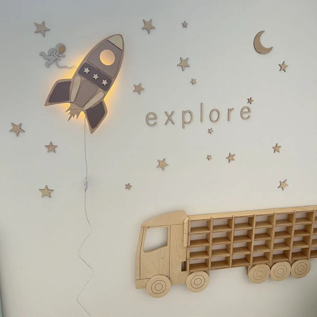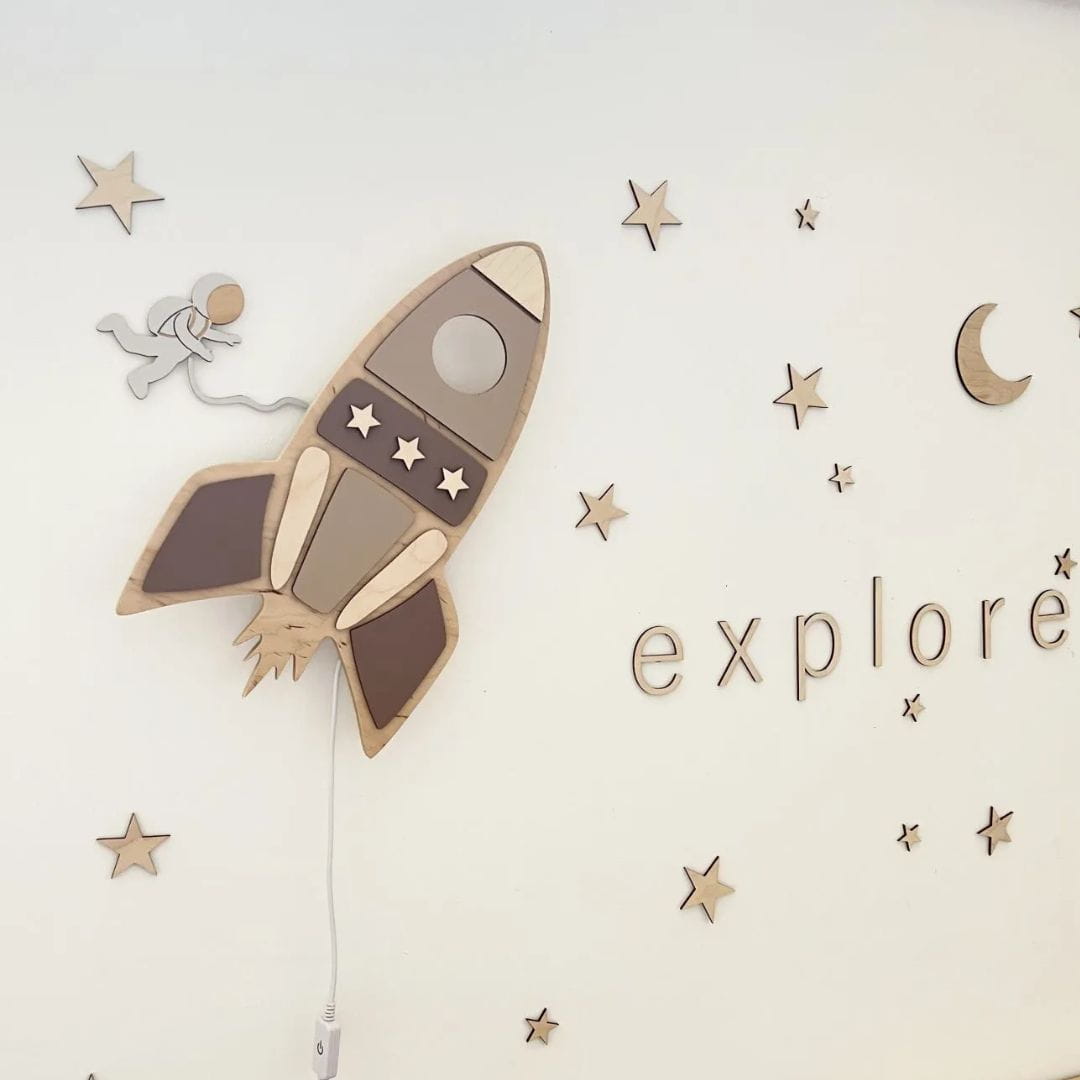 DREWNIAKOWA - LAMPKA DREWNIANA DLA DZIECI RAKIETA KOSMICZNA