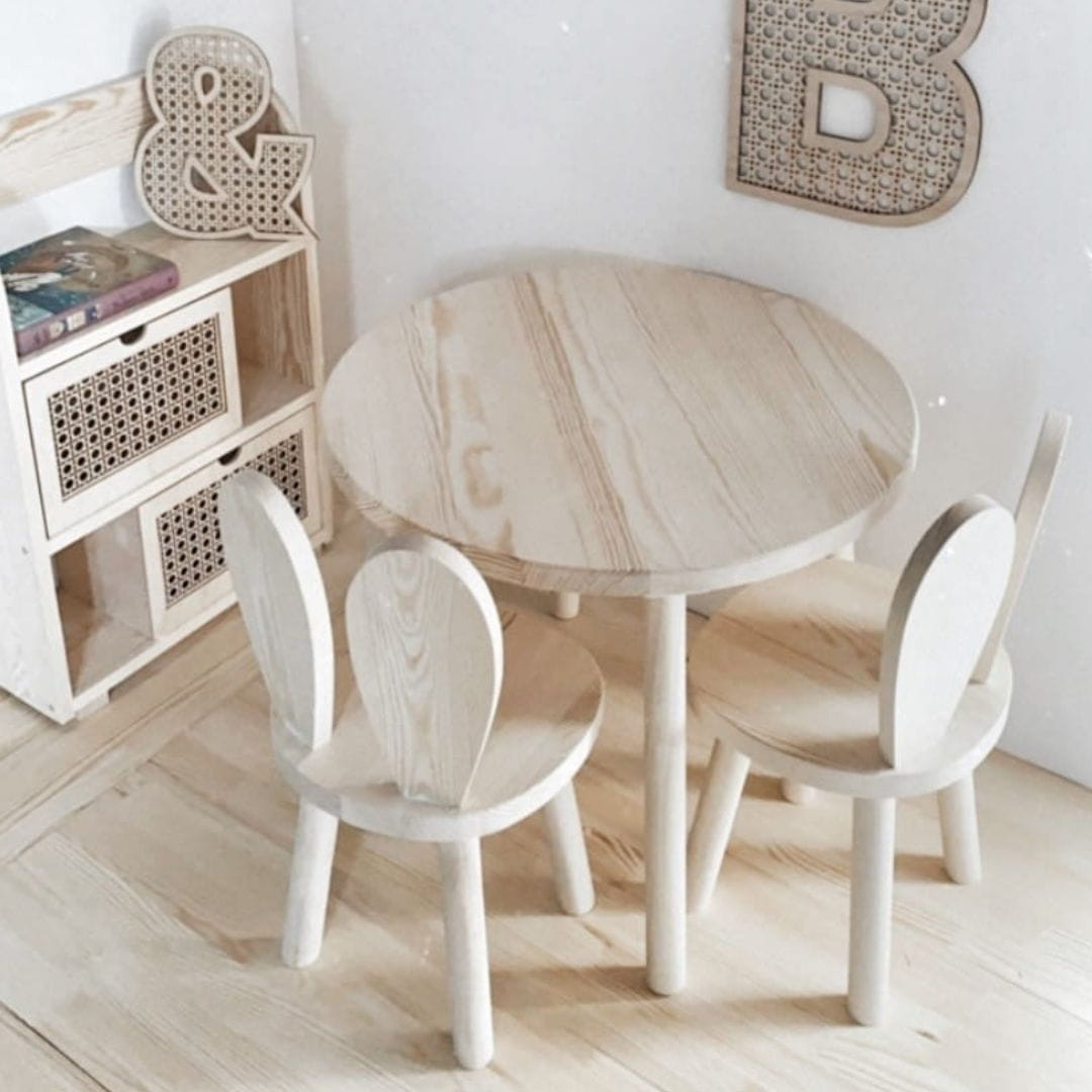 Okrągły stolik dziecięcy z drewna to połączenie prostoty, trwałości i elegancji – stworzony, by rosnąć razem z Twoim dzieckiem.