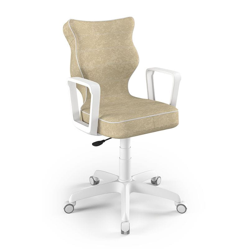Beżowe krzesło młodzieżowe do biurka Entelo NORM dopasowane do wzrostu 159-188 cm