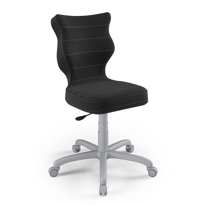 Zadbaj o prawidłową postawę Twojego dziecka z ergonomicznym krzesłem Entelo Petit. Połączenie specjalnie wyprofilowanego siedziska i oparcia zapewni prawidłowe ułożenie kręgosłupa dziecka. W zależności od wysokości biurka, krzesło może być dostosowane do wysokości blatu od 70 do 82 cm. Fotel ma regulacje siedziska - góra / dół.