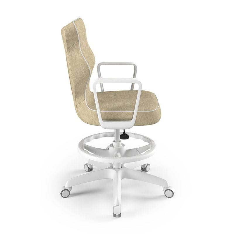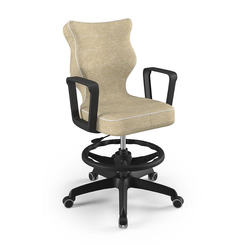 Beżowe krzesło młodzieżowe Entelo NORM z podnóżkiem dopasowane do wzrostu 146-176,5 cm