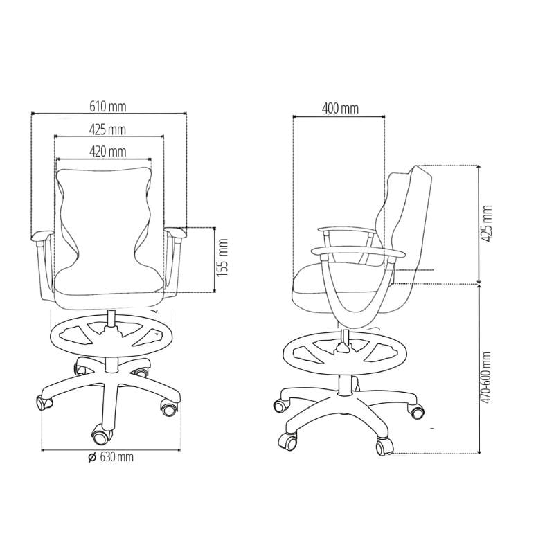 Obrotowe krzesło młodzieżowe z podnóżkiem Entelo NORM dopasowane do wzrostu 159-188 cm