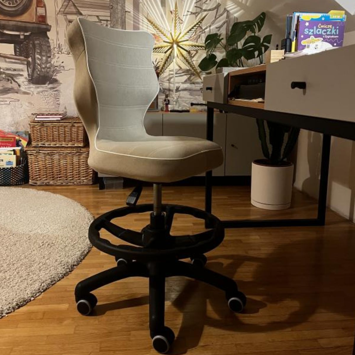 Krzesło młodzieżowe z podnóżkiem do biurka dopasowane do wzrostu 146-176,5 cm