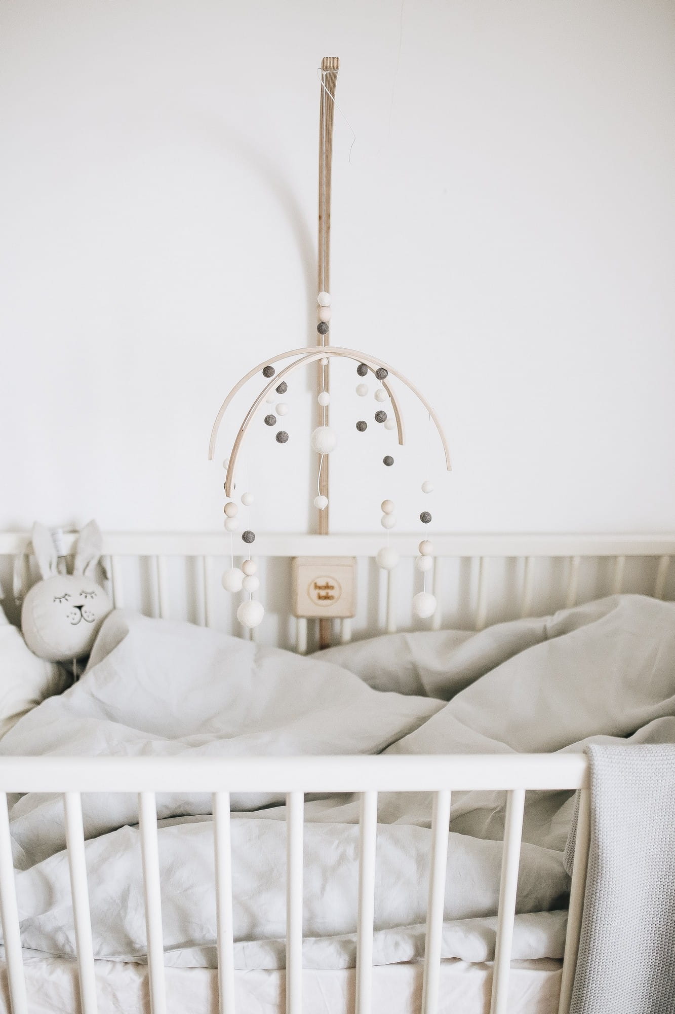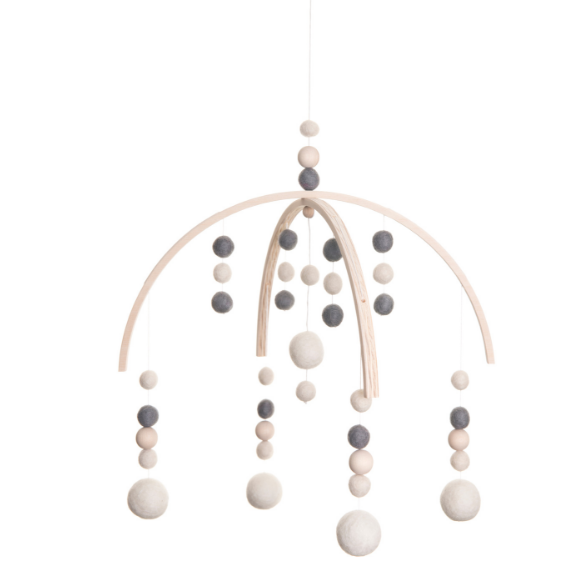 Niezwykle delikatny, lekki mobilek nad łóżeczko stymuluje wzrok malucha, ale również stanowi ciekawą dekorację.