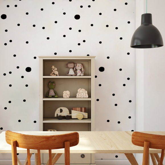 Tapeta dziecięca w kropeczki spodoba się miłośnikom skandynawskich wnętrz i oszczędnych form w pokojach dziecięcych.