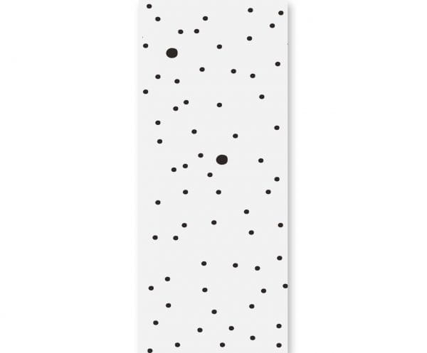 Tapeta Black Dots stworzy niepowtarzalny klimat w pokoju malucha. Elementy wzoru tapety to rozrzucone nieregularne kropeczki w kolorze czarnym.