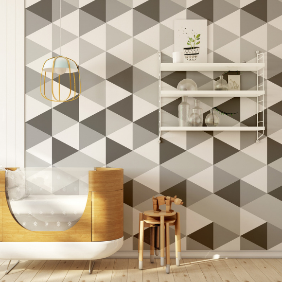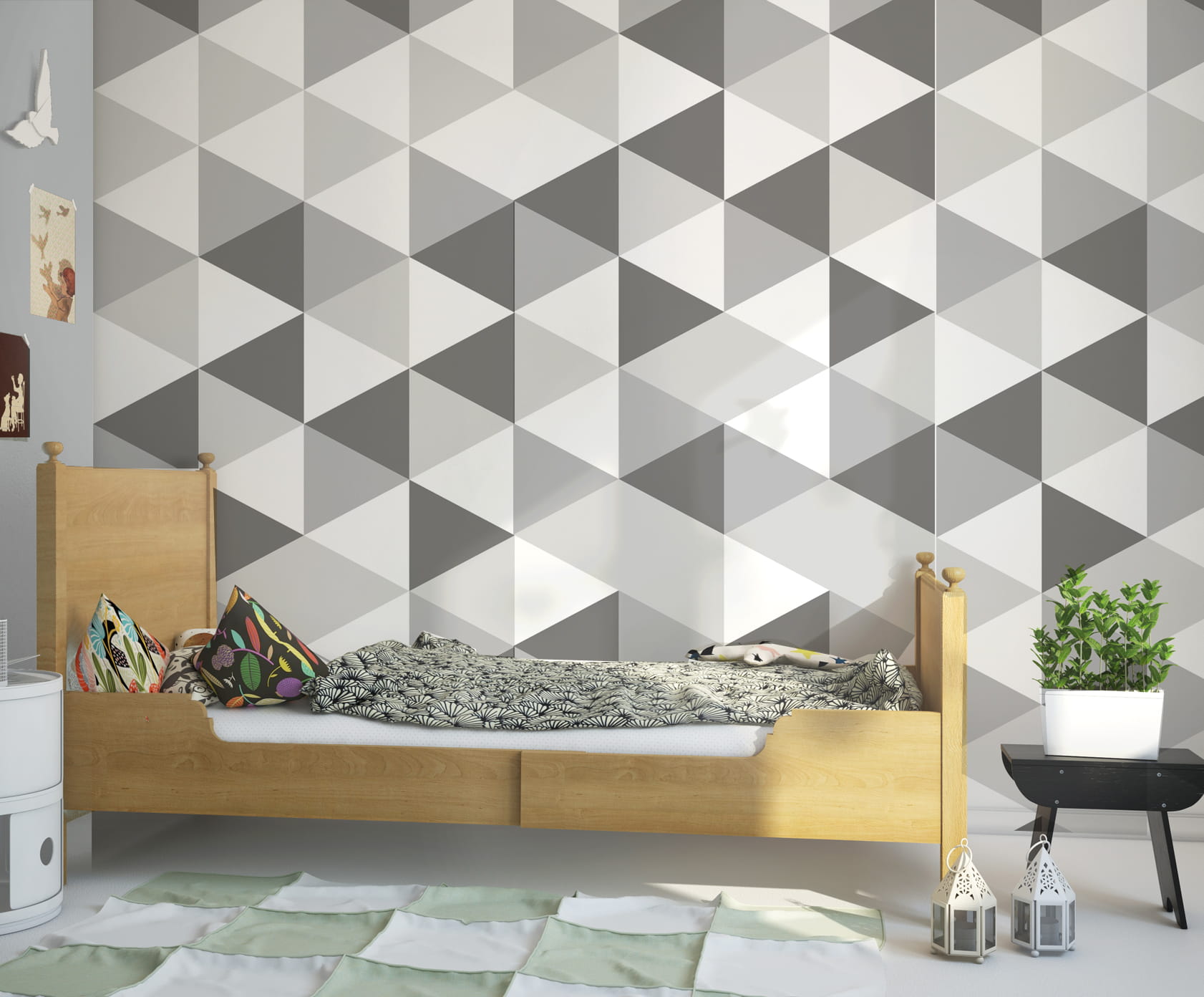 Tapeta dziecięca Hexagons Short Grey o geometrycznym wzorze stworzy wyciszający klimat wpisujący się w metody Montessori. Spodoba się miłośnikom prostych jak i nowoczesnych form w pokoju dziecięcym. Elementy wzoru to układ trójkątów w różnych odcieniach koloru szarego, które tworzą heksagon.