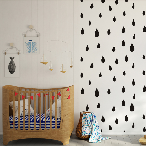 Tapeta dziecięca Melon Seeds stworzy niepowtarzalny klimat. Spodoba się miłośnikom skandynawskich wnętrz i oszczędnych form w pokojach dziecięcych. Elementy wzoru to nieregularne krople w kolorze czarnym.