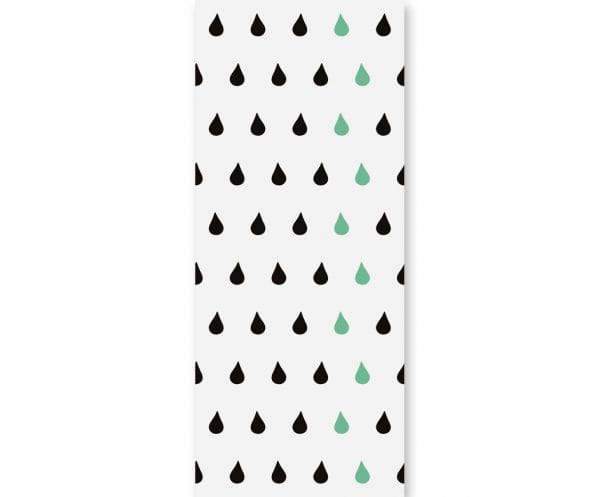 Elementy wzoru to układ kropli w kolorze czarnym z dodatkiem kilku kropli w kolorze miętowym.