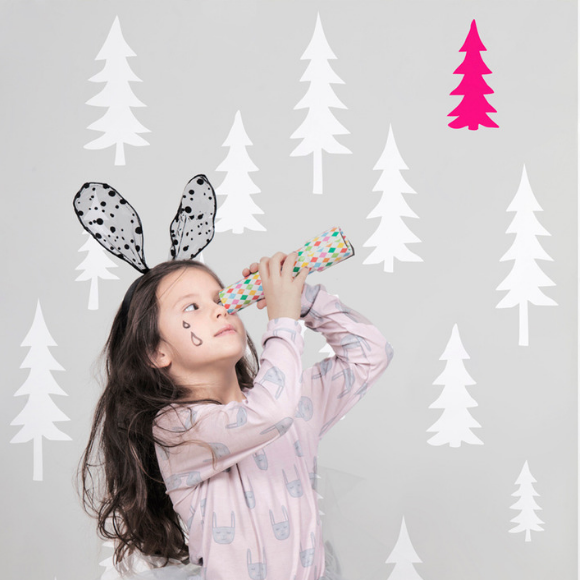 Tapeta dla dzieci Pink Forest to delikatny wzór do pokoju dziecka. Elementy wzoru zawierają nieregularnie rozmieszczone choinki w kolorze białym z dodatkiem kilku wyróżniających się mocniejszym różowym kolorem.