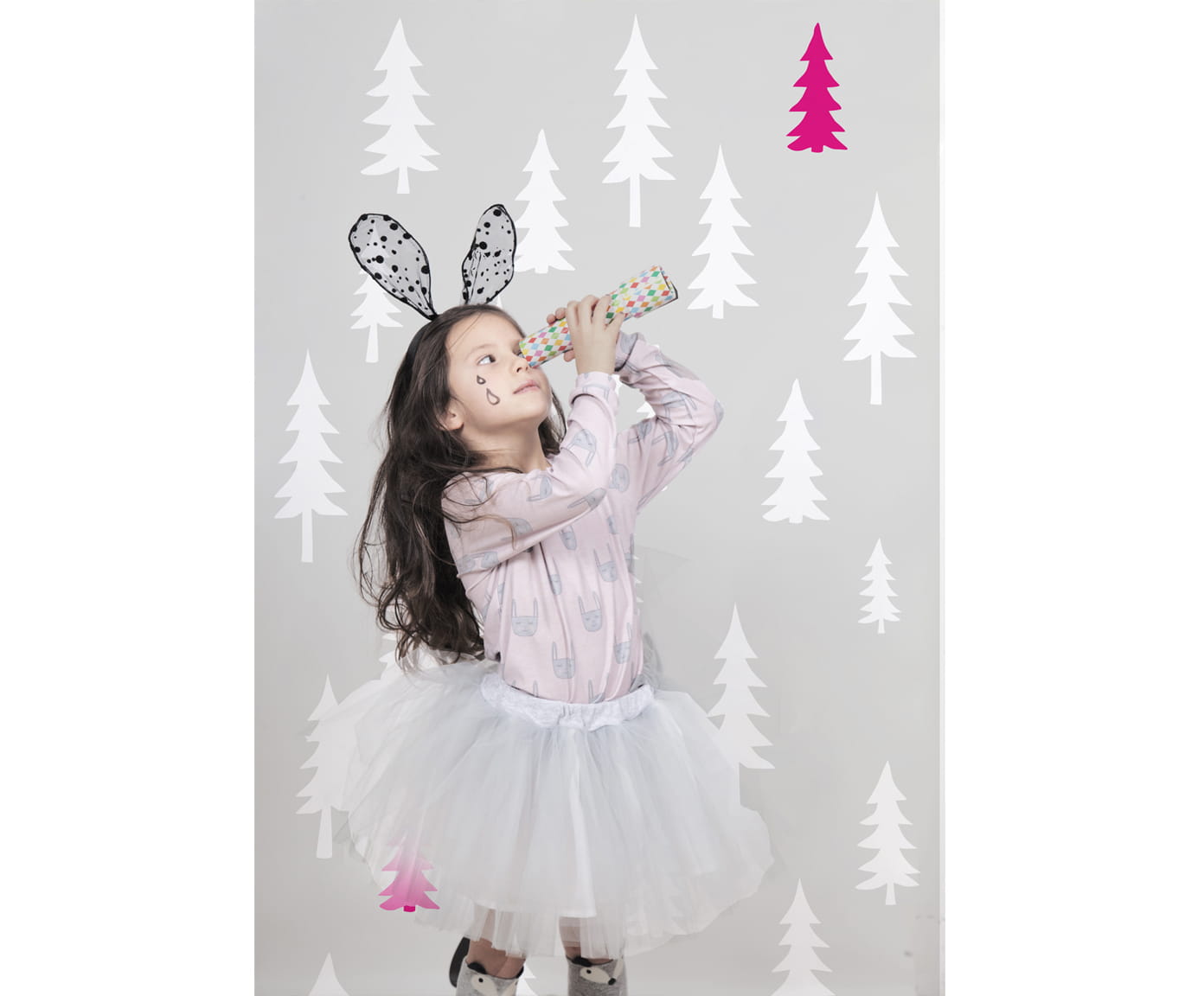 Kolor: szare tło/białe i różowe choinki