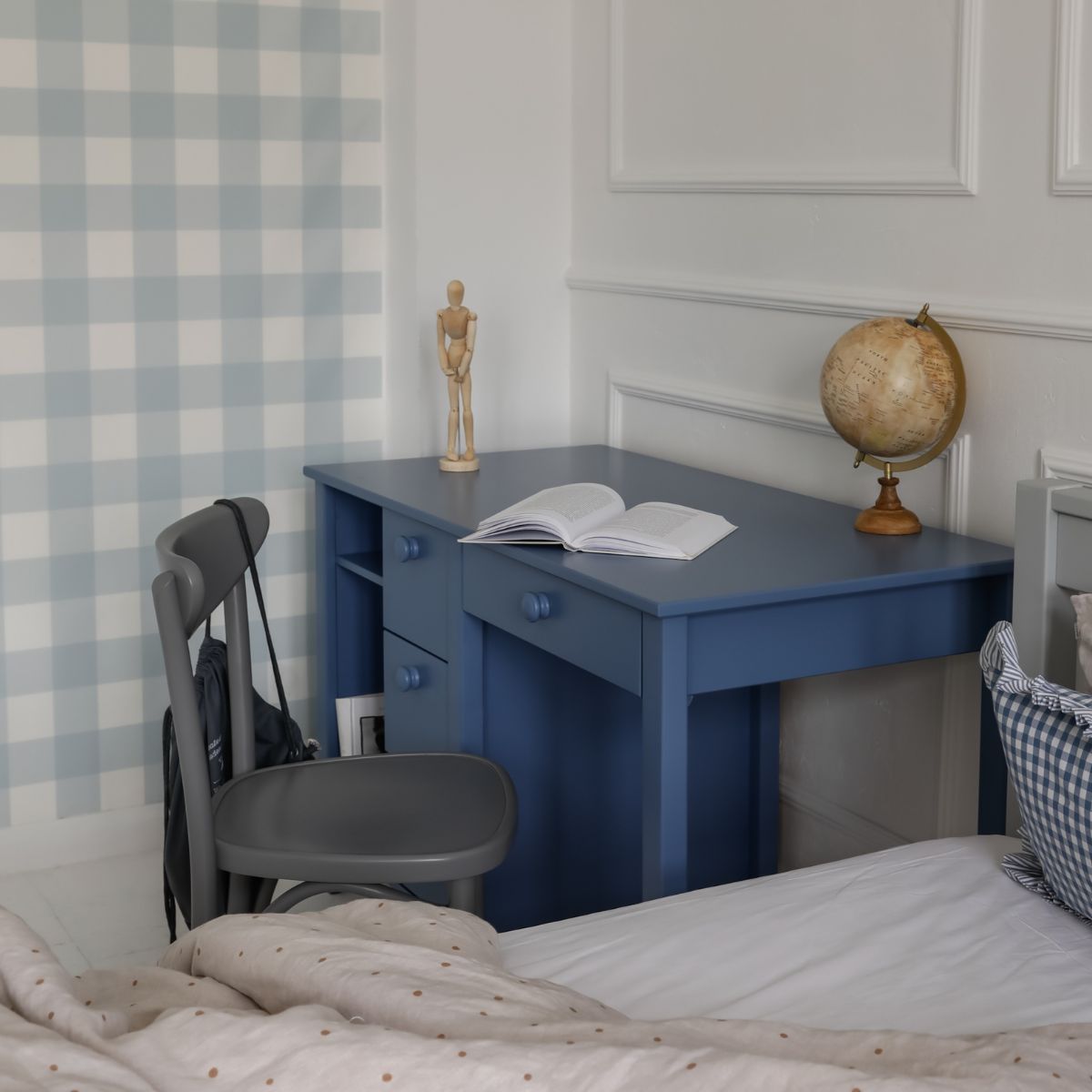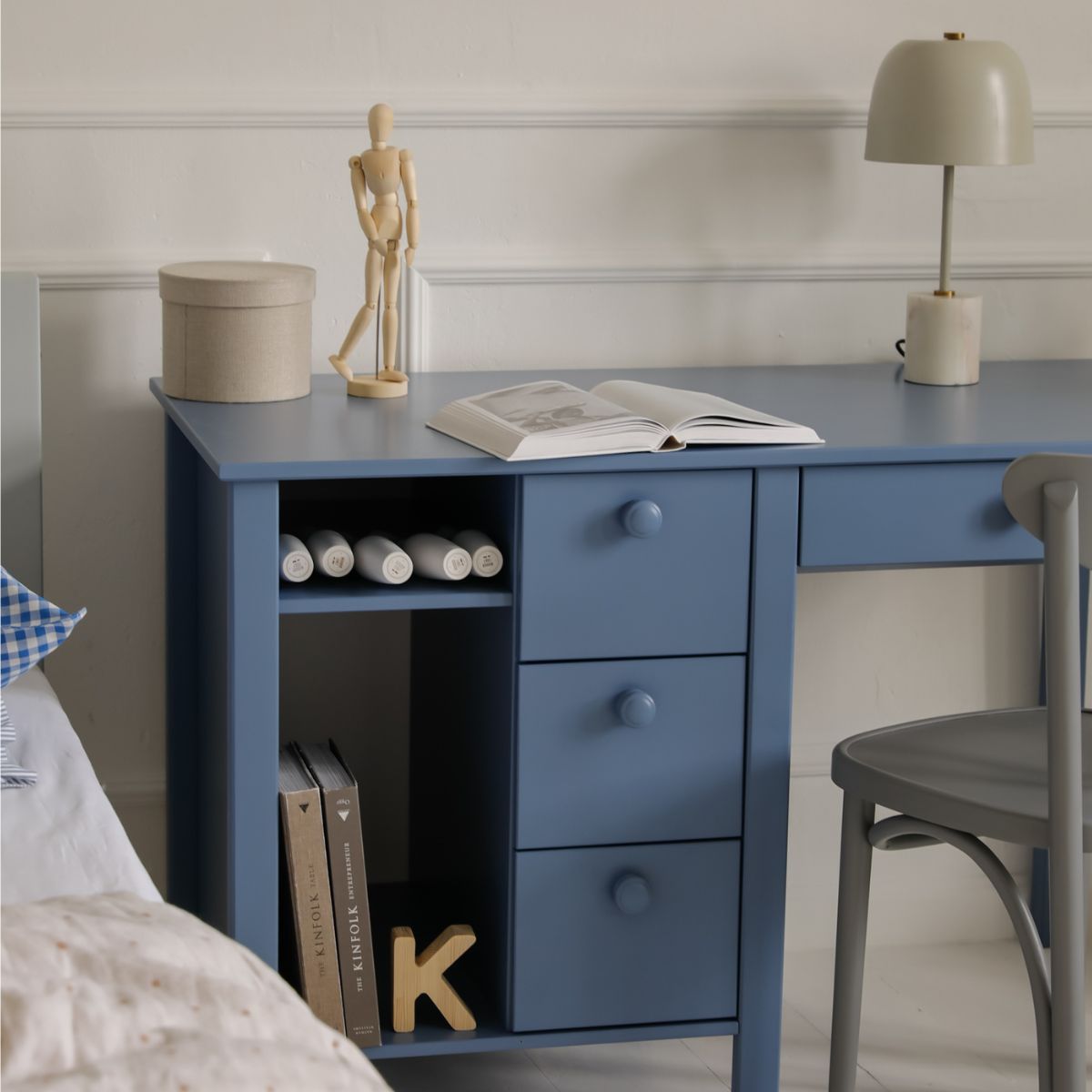 Biurko Collet dostępne jest w kilku pięknych, delikatnych pastelowych odcieniach, które doskonale komponują się zarówno z klasycznymi, jak i nowoczesnymi aranżacjami. Wybierz kolor, który najlepiej odda charakter pokoju Twojego dziecka oraz podkreśli jego indywidualny styl!