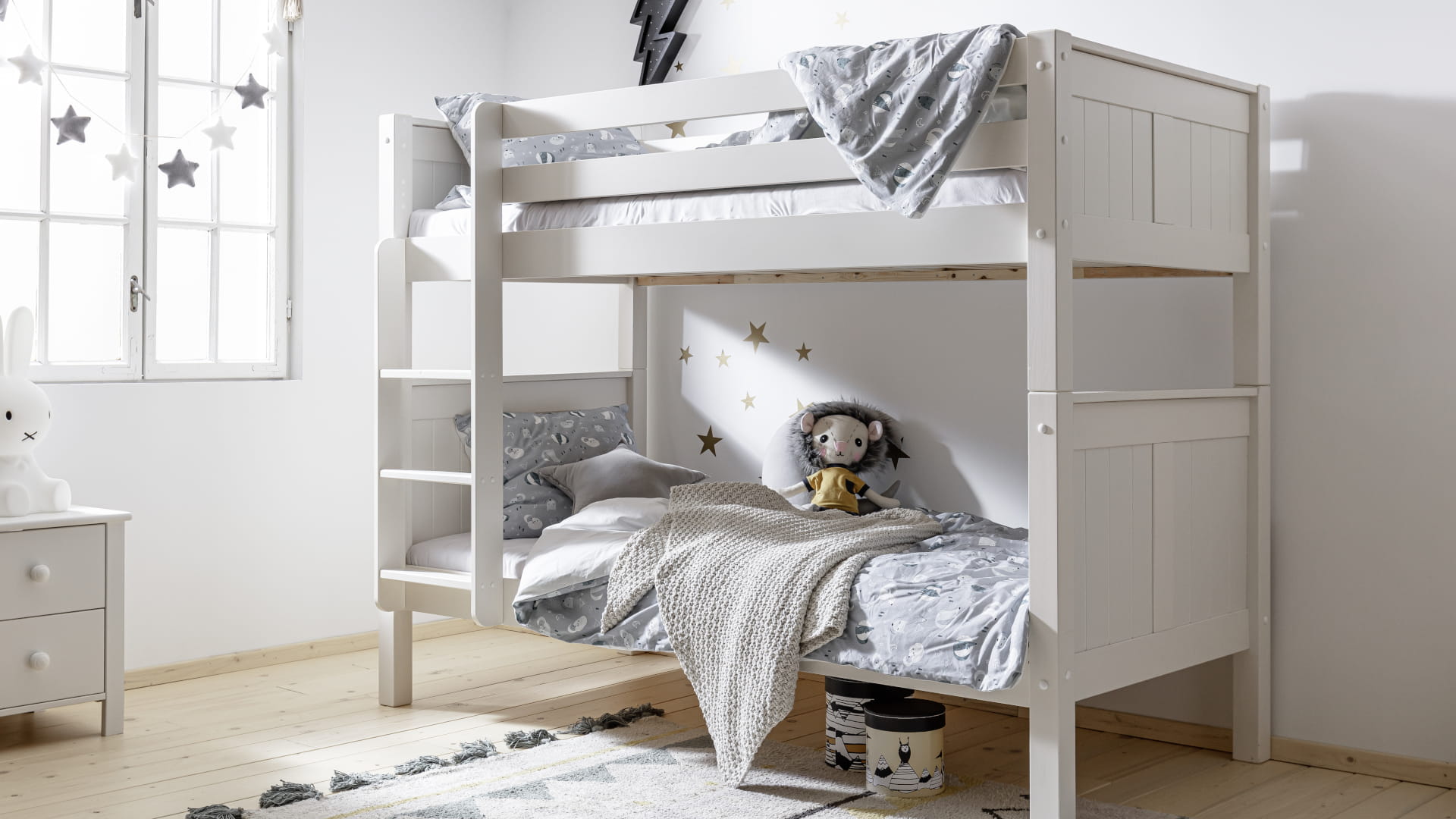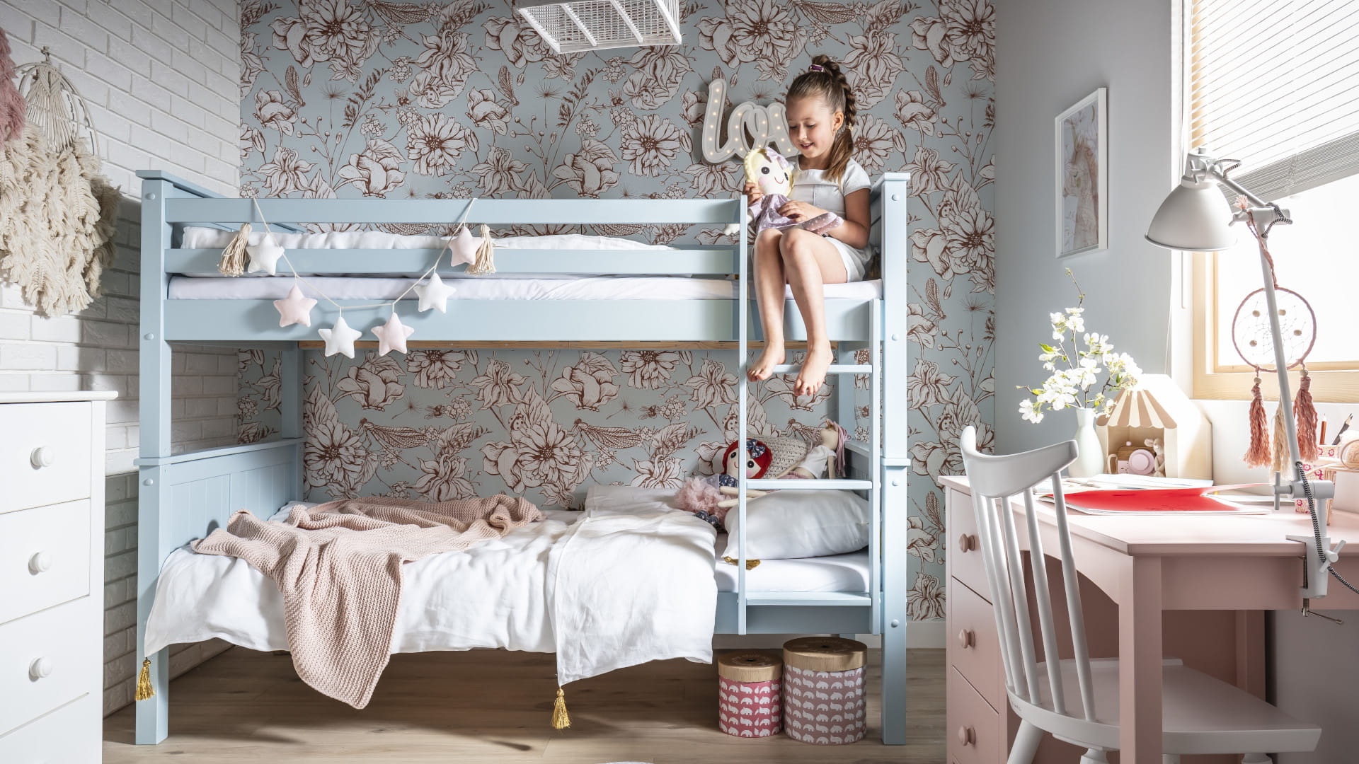 Pastelowe łóżko piętrowe dla rodzeństwa Collet - idealne do małych pokoi