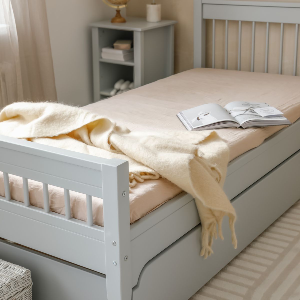 - Szufladę do łóżka – dodatkowa przestrzeń do spania, na pościel czy zabawki.
