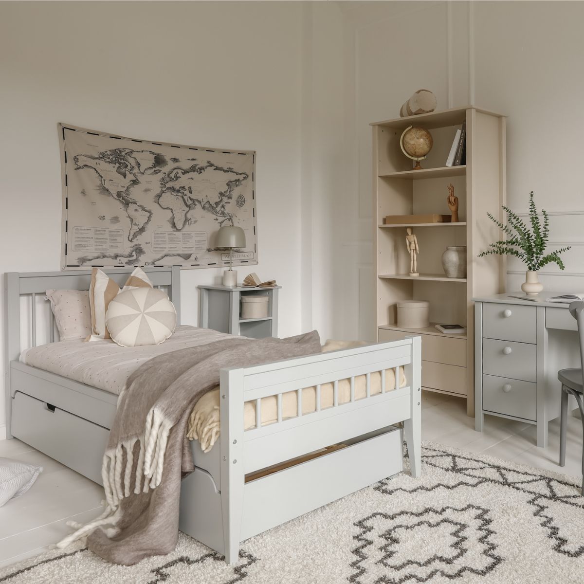 Stwórz wymarzony pokój dla swojego dziecka – połącz łóżko Carmela z pozostałymi meblami z kolekcji Collet, by uzyskać spójną i funkcjonalną aranżację, która zachwyca nie tylko wyglądem, ale także łatwością użytkowania.